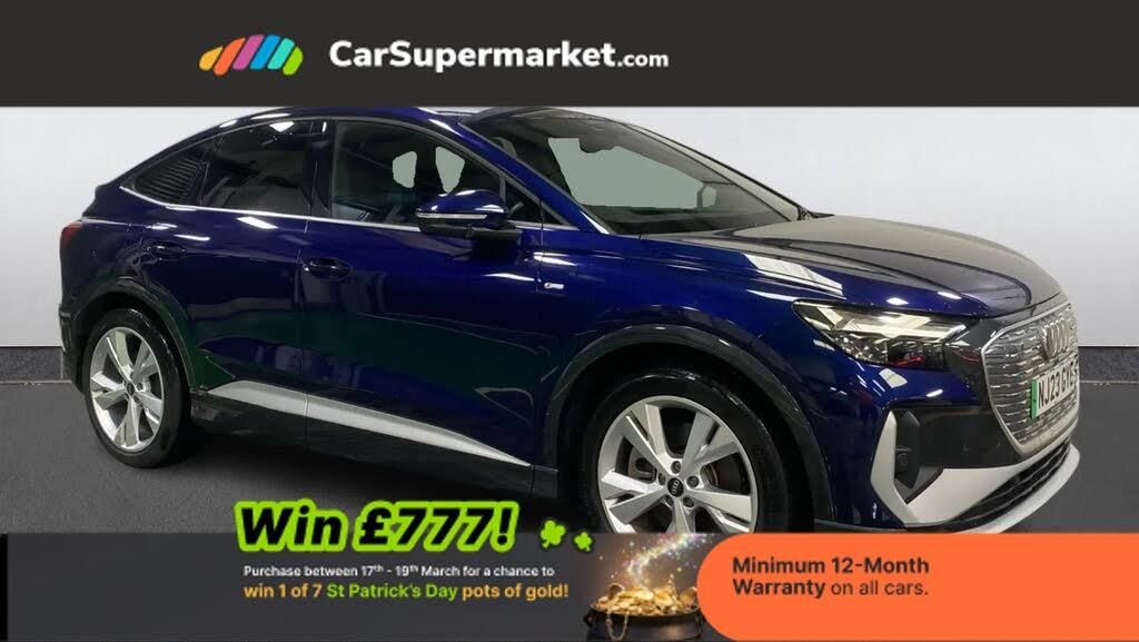Apple CarPlay/Android Auto, Audi Virtual Cockpit, Bluetooth, Traffic Sign Recognition, Lane Departure Warning, Sat Nav, Digital Radio, Privacy Glass, Heated Front Seats;Presented in blue, this Audi Q4 S Line combines sleek electric SUV styling with a strong level of equipment. Highlights include Apple CarPlay and Android Auto, Audi Virtual Cockpit, Bluetooth connectivity, traffic sign recognition, lane departure warning, satellite navigation, digital radio, privacy glass and heated front seats. It also comes with a minimum 12-month warranty.