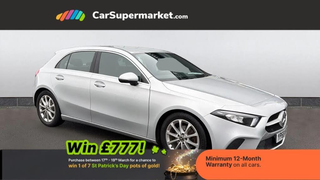 7" colour screen in instrument panel,7" tablet style colour display,Active lane keep assist,Attention assist,Bluetooth interface for hands free telephone,Bulb failure indicator,Cruise control + speed limiter,Direct steering,DYNAMIC SELECT with a choice of driving modes (ECO, Comfort, Sport, Sport+ and Individual),External temperature gauge,HDD Navigation system,Low fluid warning light,Mercedes connect me with remote online services,Radio aerial integrated into roof spoiler,Reversing camera,Service indicator (ASSYST PLUS),Speed sensitive power steering,Stop/start system,Trip computer,Voice control system,Warning lamp for direction indicators,Lowered comfort suspension,2 USB ports in centre console,DAB Digital radio,MBUX Multimedia system including digital instrument cluster and phone mirroring,Adaptive brake lights,Body colour bumpers,Body colour door handles,Body colour side skirt,Body coloured door mirrors,Chrome beltline trim,Chrome weather strip,Diamond radiator grille with black pins with one louvre in silver + chrome insert,Electric adjustable heated door mirrors,Electric front windows,Electric rear windows,Headlamp assist,Heated rear window with timer,High level third brake light,LED daytime running lights,LED Headlights,LED rear lights,Rain sensor windscreen wipers,Rear fog lights,Rear wiper,Twin Trapezoidal tailpipes,1/3 to 2/3 split folding rear seats,12V socket,3 spoke leather multifunction sports steering wheel,Adjustable head restraints,Artico man-made leather upholstery,Auto Mercedes-Benz child seat recognition sensor,Black headlining,Controller on centre console with chrome surround,Dual zone automatic climate control,Exit lights,Footwell lights,Front and rear reading lights,Front centre armrest with storage compartment,Front door sills with Mercedes Benz lettering,Front head restraints,Front seat backs luggage nets,Gearshift paddles on steering wheel,Height adjustable front seats,Height/reach adjustable steering column,Illuminated cup holders,Illuminated glovebox,Illuminated storage compartment,Interior door handle illumination,Isofix rear child seat preparation,Load securing rings in luggage compartment,Luggage compartment cover,Oddments tray lighting,Reading lights,Rear head restraints,Storage compartment under load area floor,Sunvisors with illuminated vanity mirrors,Touchpad,Twin front cupholders,Seat comfort pack - A Class,3 rear 3 point seatbelts,ABS with Brake Assist,Active bonnet,Child proof door locks,Crash responsive emergency lighting,Drivers knee airbag,Dual stage driver/passenger airbags,Electronic parking brake,ESP with ASR,Front and rear seatbelt reminder,Front head airbags,Front passenger seat occupancy sensor,Front side airbags,Hill start assist,Tyre pressure monitoring system,Warning triangle and first aid kit,Window airbags,Alarm system/interior protection/immobiliser,Keyless ignition,Remote central locking,Carbon fibre interior trim finishers,Chrome air vent surrounds,17" 10 spoke light alloy wheels painted in vanadium silver,Tirefit sealant with electric air pump