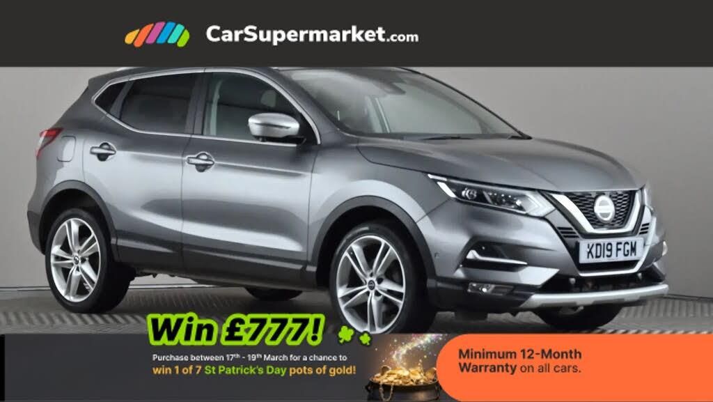 Advanced drive assist display 5'' TFT coloured screen,Android Auto,Apple CarPlay preparation,Bluetooth connectivity,Electric speed sensitive power steering,Front parking sensors,Intelligent around view monitor,Intelligent parking assist,Lane departure warning system,Nissan connect evo 7" touchscreen navigation and entertainment system,Normal or sport selectable steering,Outside temperature sensor,Push button starter,Rear parking sensors,Rear view camera,Service interval indicator,Smartphone integration,Stop/start system,Tomtom connected services,Traffic sign recognition,Trip computer,Voice control system,Nissan chassis control (intelligent ride control, intelligent trace control, intelligent engine brake),6 speakers,AM/FM radio, CD audio system,Aux-in socket,DAB Digital radio,Steering wheel mounted audio controls,USB port,Anti dazzle rear view mirror,Auto wipers,Body colour bumpers,Body coloured door handles,Chrome window surround,Daytime running lights dip function when turn signal applied,Electric folding door mirrors,Electric front and rear windows with one touch illuminated window controls,Electric front/rear windows,Electrically adjustable door mirrors,Front fog lights,Gloss silver door mirror caps,Heated door mirrors,High beam assist,Intelligent auto headlights,LED indicators in door mirrors,Matt silver roof rails,Panoramic sunroof with one touch shade,Privacy glass,Rear roof spoiler,Rear wiper with reverse link,Shark fin antenna,Underbody vortex generators,2 X front 12v power sockets,3 height adjustable rear headrests,60/40 split folding rear seat,Ambient lighting in centre console,Boot lighting,Centre console storage box/armrest,Chrome interior door handles,Cloth upholstery,Configurable luggage board system,Driver's seat manual height adjust,Dual zone climate control,Front and rear door pockets with bottle holders,Front and rear seat belt pre-tensioners with load limiters,Height adjustable front headrests,Individual rear seat reading lights,ISOFIX on outer rear seats,Leather D shaped steering wheel,Leather gear lever,Leather knee pad,Manual height adjustable front passenger seat,Manual lumbar support on driver seat,Manual lumbar support on passenger seat,Monoform front seats with plastic backboard,One touch electric shade,Parcel shelf stow function under luggage board,Pollen filter,Rear armrest with 2 cupholders,Synthetic leather wrapped door handle with contrasting stitching,Tilt/telescopic adjustable steering wheel,LED pack - Qashqai,Safety shield plus pack - Qashqai,6 airbags - Driver, front passenger, curtain and side airbags,ABS, ESP, EBD and brake assist,Auto hold function,Child locks on rear doors,Electronic parking brake,Front and rear seat belt warning,Front passenger airbag deactivation,Height adjustable front seatbelts,Hill start assist,Intelligent emergency braking with pedestrian recognition,Three 3 point rear seatbelts,Tyre pressure monitoring system,Anti-theft immobiliser,Intelligent Key,Remote central locking,Thatcham Cat.1 alarm,Carbon graphite dash trim,19" Ibiscus alloy wheels,Tyre puncture repair kit