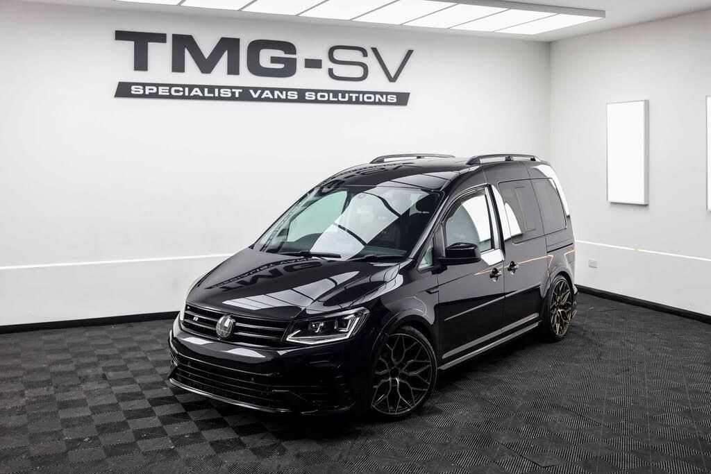 TMG THE CUSTOM CADDY SPECIALISTS! NO VAT! EURO 6! AIRCON! DSG 150PS! 7 SEATER! RARE VAN! SWB SWB LIFE + HYBRID BUMPERS + DSG + FULL ALL TRACK KIT!! We are delighted to be offering our latest Custom VW Caddy fitted with our TMG Style pack. Volkswagen Caddy DSG Life 2.0 TDI BlueMotion Tech Euro 6 (s/s) 5dr, finished in Black pearl, with some fantastic extras. This van has only covered 85550 miles with full service history. It is superb throughout. This van was first registered 22/12/2017. This van is classed as a car so cheaper road tax + national speed limits Factory extras include Deep black pearl, discover media nav, 6 speakers, park assist rear, app connect, DAB, light and vision pack, leather MFSW, A/C, light and vision pack, leather MFSW, heated screen, plus much more. Please contact for spec. This van includes our TMG pack which includes, Exclusive TMG speedo dials, TMG Shadow pack, TMG aero pack, Bespoke TMG front seat upholstery, carpeting and alcantara to rear with LED spots, forged wheel plus tyre package and coilovers that are brand new and fitted by us. All grills in high gloss, spoiler, front lip, front bra, roof bars, LED front and rear lights, TMG branding pack plus much more. We DO NOT buy vans that have been modified a number of years ago and brand them up as our own, all vans are newly built. For full specs please contact us. Please visit our website for over 40 HQ photos in our very well lit studio including close ups of the panels. Walk around videos on request. Please visit our instagram highlights for a more in depth look at what we do! Instagram @TMGSPECIALISTVANS Facebook @TMGSPECIALISTVANS Over 200 5 star reviews on trustpilot. For the fastest response please whats app us! 6 Month warranty included FOC including RAC 12M breakdown cover we know what we sell and how we prep our vehicles. 12 Month advisory free MOT and new major service from point of sale included. Finance subject to status all arranged in house. Every vehicle we sell undergoes a 3 day detail including machine polish seats out and shampooed etc *AT TMG WE BUILD ALL OUR OWN VANS ALL IN HOUSE FROM THE GROUND UP, FROM OUR PAINTBOOTH OVEN TO UPHOLSTERY