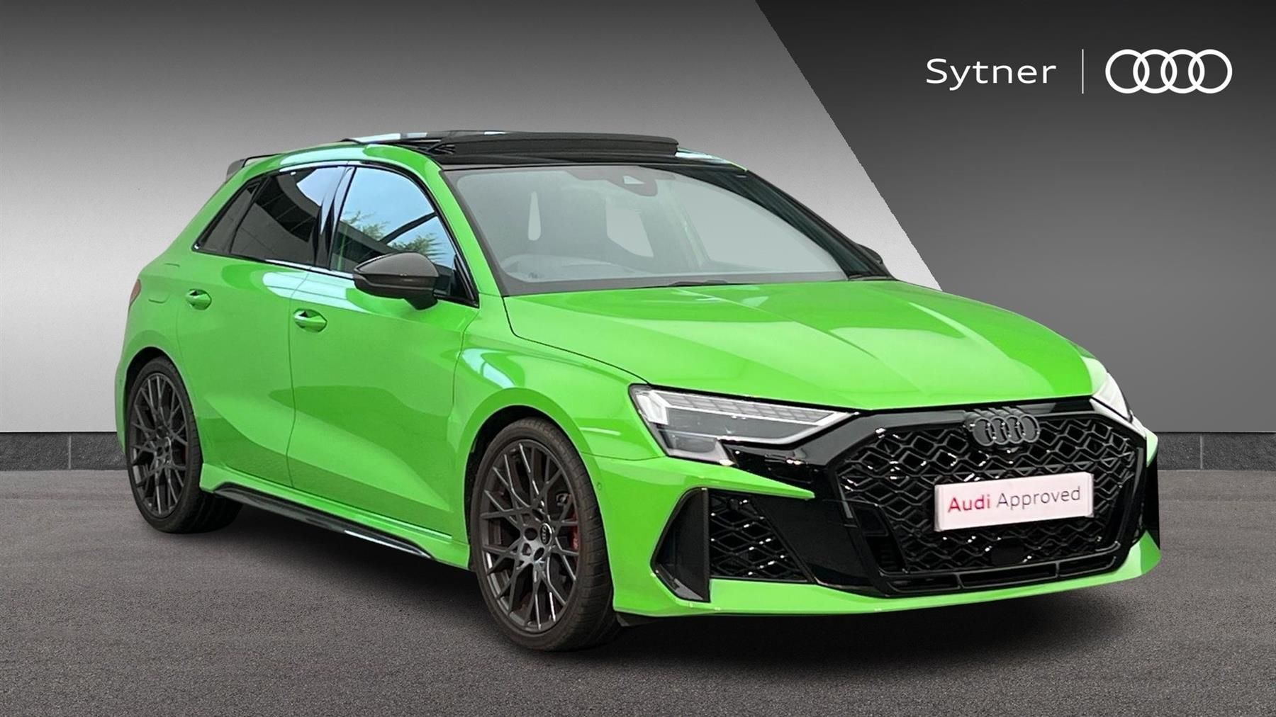 Reserve Online,Technology Pack Pro,Panoramic glass sunroof,Frameless auto dimming interior rear view mirror,Heated folding auto dimming door mirrors with memory,Power adjustable heated front seats with drivers memory,Drive and Park Assist package pro,Protection and Warning System package plus,Adaptive cruise control,Lane change assistant with exit warning system,Red brake calipers,Comfort and Sound Pack,Matrix LED headlights with dynamic indicator,MMI Navigation Plus with high resolution 10.1" colour touch screen display,Pre-sense front with pedestrian and cyclist detection,Distraction and Fatigue warning,Collision avoidance assistant,Camera based traffic sign recognition,Audi virtual cockpit plus with RS specific design and 12.3" display with additional graphic display options,RS specific driving modes - RS Individual RS Performance and RS Torque rear,RS dual branch exhaust system with two chrome plated oval tailpipe trims,Audi Phonebox light with wireless charging,Park Assist with parking system Plus,Audi beam LED projection of RS logo on ground as you exit,Auto dimming frameless rear view mirror,Light and rain sensors,3-zone deluxe automatic air conditioning,Privacy glass - dark tinted rear window rear door and side windows