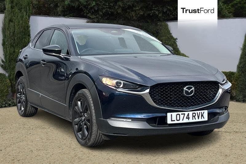 10.25 display with Mazda Connect infotainment, 7 TFT Colour driver instrument panel display, Adaptive cruise control (Mazda radar cruise control) features stop and go, Blind spot monitoring with rear cross traffic alert, Drive mode selector, Driver attention alert system, E-call with GPS, Emergency stop signalling system, Engine start/stop button, Front and rear parking sensors, Integrated Alexa Voice Assistant, Integrated bluetooth, Integrated Mazda navigation system, Intelligent speed assist, Lane keep assist system (LAS) with Lane departure warning system (LDWS), Mazda connected services, PAS, Power lift gate, Qi wireless charging, Reversing camera, Service indicator, Tailgate, Traffic sign recognition, Trip computer, Windscreen projected colour active driving display (HUD), Wireless Apple CarPlay/Android Auto, Auto dimming rear view mirror, B-pillar and C-pillar garnishes in gloss black finish, Black electrically adjustable, heated auto power folding door mirrors with integrated indicators, Chrome finish signature wing in front grille, Coming/leaving home lighting function, Dual bright finish exhaust tip trim, Dusk sensing headlights, Electric front/rear windows with one touch auto up/down, Front kodo turn signal, Gloss black front grille, Gloss black rear roof spoiler, LED auto headlight levelling, LED headlights with halogen daytime running lights and high beam control, LED rear combination lights, Privacy glass (rear side windows and rear screen), Rain sensing front wipers with adjustable speed and intermittent wipe, Rear fog lights, Rear side wing doors, Rear wiper, Third brake light, 12V power outlet in centre console, 3 seat bench in 2nd row, 60/40 split fold down rear seats, Cloth upholstery with red stitching and interior accents, Dark cloth door panel inserts, Dashboard, door cards and front centre armrest in black cloth with red stitching, Driver and front passenger visors with covered vanity mirror and driver ticket holder, Driver seat manual slide, recline, height and seat tilt adjust, Driver, front passenger and two rear door storage, Driver, Front passenger and two rear grab handles with coathooks, Dual zone climate control air conditioning with rear air vents, Folding rear centre armrest with two cup holders, Front and rear (x3) head restraints, Front and rear LED lighting, Front armrest, Front centre storage with two cupholders, Front passenger seatback pockets, Front passengers seat manual slide, recline and height adjustment, Gear shift indicator, Glovebox illumination, Heated front seats with 3 stage setting, ISOFIX child seat anchorage points attached on outer rear seats, Leather wrapped gear shift knob, Leather wrapped steering wheel with telescopic and tilt adjustment, LED luggage compartment lighting, Light roof headlining and pillars, Roof mounted sunglasses holder, Single front passenger seat, 3 point ELR front seat belts x2 with pretensioners, 3 point ELR rear seat belts, Anti-lock braking system (ABS), Drivers knee airbag, DSC - Dynamic Stability Control, Electronic parking brake with auto disengage function and auto hold function, Front and rear curtain airbags, Front dual stage driver and single stage front passenger airbags, Front passenger airbag cut-off switch, Front side airbags, Front smart city brake support, G-Vectoring control plus, Hill launch assist, Manual child lock in rear doors, Mild Hybrid system with regenerative braking, Seatbelt reminder for driver/front passenger and rear seats, Traction control system (TCS), Tyre pressure monitoring system (TPMS)