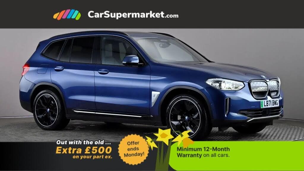 BMW Live Cockpit Professional sat nav system including 10.25" high resolution display and Intelligent Voice Assistant,BMW Online services,BMW Teleservices,Enhanced bluetooth with wireless charging,Front/rear Parking distance control,Parking assistant,PAS,Reversing assist camera,Wifi hotspot preparation,eDrive exterior sound,Mode 3 charging cable 22kW,BMW iconic sound electric,DAB radio,Adaptive LED Headlights with Low and high beam headlights in Bi-LED, LED daytime running lights in corona ring style and LED Indicators,BMW Individual high gloss shadow line with extended contents,Body coloured bumpers,Exterior mirrors - electrically folding with anti-dazzle,High gloss black shadow line roof rails,High gloss shadowline exterior trim,Interior rear view electrochromatic mirror with automatic anti dazzle function,Metallic paint,Model specific design elements - Frozen grey decorative elements and pearl chrome decorative strip,Panoramic glass sunroof, two parts, electric actuation, sliding function, wind deflector, sun protection with floating headliner,Sun protection glass,3 zone automatic air conditioning,Ambient lighting,Anthracite headlining,Driver and front passenger heated seats,Electric adjustable seats with memory function,Front and rear headrests,Front sports seats,Seat backrest adjustment for rear seat,Sport leather steering wheel,Through loading system with 40/20/40 split folding rear seat,Vernasca leather upholstery,Driving assistant professional pack - iX3,Extended storage pack - iX3,ABS/EBD,Active protection,Automatic Stability Control (ASC),BMW emergency call,Three 3 point rear seatbelts,Tyre pressure monitoring system,Aluminium fine cutting interior trim with pearl chrome highlight trim finishers,Galvanic embellisher for controls,Sensatec instrument panel,20" Aero jet black alloy wheels - Style 843,BMW mobility system,Phytonic Blue,Towbar - Fully Electric,Vernasca Leather - Black with Grey Stitching
