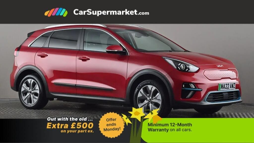 Cruise Control, Android Auto, Apple CarPlay, Parking Sensors, Rear View Camera, Bluetooth, Privacy Glass;Kia e-Niro 64kWh Long Range (Red) A reliable electric SUV with strong range and efficiency. Features include Apple CarPlay/Android Auto, rear view camera, parking sensors, Bluetooth and privacy glass. Minimum 12-month warranty. Last serviced 06/11/2025. MOT due 07/01/2027.