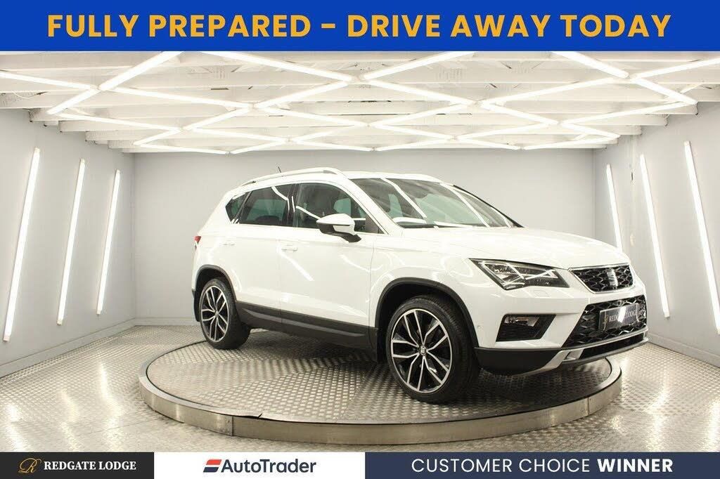 12V Socket in Front, 3.5in Drivers Display, Full Link, Media System Plus, Navigation System, Cruise Control, Digital Clock, Gear Recommendation Indicator, Low Fuel Warning Light, Outside Temperature Gauge, Rear Parking Sensors, Rear View Camera, RPM Counter, SEAT Drive Profile with Driving Experience Button, Tiredness Recognition System, Trip Computer, Tyre Pressure Monitoring System, 18in Alloy Wheels - Performance, Aluminium Door Step in Front Doors, Aluminium Roof Rails, Chrome Double Exhaust Pipe, Dark Tinted Rear Windows, Door Mirrors and Door Handles in Body Colour, Electrically Folding Door Mirrors, Front and Rear Electric Windows, Front Grille Frame - Chrome, Locking Wheel Bolts, SEAT Logo Tailgate Release, Tinted Windows, Wheel Arch Surrounds - Black, Window Surrounds - Chrome, Door Mirrors with Welcome Light Silhouette, Front Fog Lights with Cornering Function, Full LED Headlights, LED Daytime Running Lights, LED Taillights, Lights Left On Warning Buzzer, Active Front Head Restraints, Advanced Multi Colour Interior Ambient Lighting and LED Interior Illumination, Ambient Spot Lighting and Front Footwell Illumination, Armrest with Air Outlet in Rear, Black Interior Roof, Chrome Dashboard Detailing, Convenience Pack, Driver and Passenger Seat with Lumbar Adjustment, Driver and Passenger Sunvisor with Card Holder for Driver, Driver and Passenger Sunvisor with Covered and Illuminated Mirrors, Drivers Seat Lumbar Adjustment, Dual Zone Climate Control, Four Cargo Rings in the Boot, Front Armrest - Adjustable with Storage Compartment, Front Courtesy Light with Front and Rear Reading Lights, Front Cup Holders, Front Seat Back Storage Pockets, Fuel Filler Flap linked to Central Locking, Height Adjustable Front Headrests, Height Adjustable Passenger Seat, Height-Adjustable Drivers Seat, Illuminated Boot, Illuminated Glovebox, Instrument Lighting with Brightness Control, Leather Gear Knob, Leather Steering Wheel, Rear Armrest and Easy Back Seat Release Mechanism From Boot, Rear Fog Light, Rear Reading Lights, Split Folding Rear Seats 60/40 with Reclining Function, Steering Wheel-Mounted Audio and Phone Controls, Storage Box Under Drivers Seat, Sunglasses Storage Compartment in Roof Console, Winter Pack, Comfort Suspension, Electronic Differential Lock System - XDS, Power Steering - Electrically Assisted, Alarm - Perimeter and Interior Monitoring, Anti-Lock Braking System - ABS, Driver and Front Passenger Airbags, Drivers Knee Airbag, Electric Parking Brake, Electronic Stability Control - ESC, Front and Rear Seatbelt Reminder, Front Assist - City Emergency Braking and Pedestrian Protection, Front Passenger Airbag De-Activation, Front Side Airbags, Hill Hold Control, ISOFIX Points in Outer Rear Seats with Top Tether Anchorage Points, KESSY - Keyless Entry and Go, Rear Wash - Wipe, Traction Control System - ASR, Two Curtain Airbags, 19in Alloy Wheels - Exclusive Machined Bi-Colour, Bila White, Top View Camera
