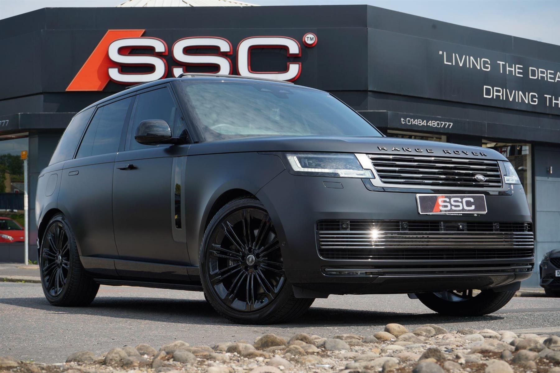 Stunning Range Rover SV P615 V8 Finished In Santorini Black Metallic With SV Intrepid Ebony Leather Interior. Fantastic Spec Inc: Satin Paint Protection Film, Upgraded Quicksilver Sport Exhaust System With Sound Architect Valve, Ceramic Coating, Deployable Side Steps, Front and Rear Mud Flaps, SV Intrepid Exterior Accents, Black Anodised Metal Finisher, SV Bespoke Ebony Leather Headliner, Satin Black Ceramic Controls, Hot Stone Massage Seats With Ventilation, Executive Class Comfort Plus Rear Seats, SV Bespoke Branding, 23'' 1075 Alloys Gloss Black, Sliding Panoramic Sunroof, Digital LED Headlights, Privacy Glass, SV Bespoke Full Extended Leather Upgrade, Meridian Signature Sound System, Heated Leather Steering Wheel, Air Quality Sensor, Cabin Air Purification Pro, Easy Boot Loading, Wireless Apple CarPlay, Head Up Display, ClearSight Rear View Mirror, Blind Spot Assist, 3D Surround Camera, Adaptive Cruise Control With Steering Assist, Lane Keep Assist, Park Assist, All Wheel Steering, Secure Tracker Pro, Soft Close Doors, Black Calipers. This P615 SV Comes With Remainder Of Manufacturers Warranty