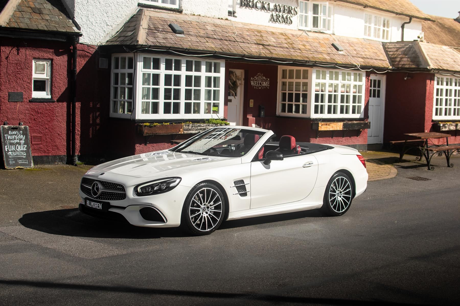 Diamond White metallic. Red perforated leather interior, electric adjustable seats with memory function, heated and ventilated front seats, climate control, cruise control, Comand with satellite navigation, Bluetooth, media interface, DVD player, DAB radio, Apple CarPlay, Android Auto, MB Connect, multifunction steering wheel, Harman / Kardon premium sound system, AMG exterior night package, AMG body styling package, 19 inch AMG multi-spoke alloy wheels, AMG sports package, switchable exhaust, sport suspension, panoramic folding hard top, heated windscreen washers, airscarf system, electric wind deflector, interior and exterior auto dimming mirror, dark aluminium look interior trim, power fold mirrors, mirror puddle lights, collision warning system with active brake, automatic high beam plus, LED dynamic headlamps, traffic sign recognition, ambient lighting, illuminated door sill, AMG floor mats, front and rear parking sensors, keyless go, tyre pressure monitoring. Full service history.