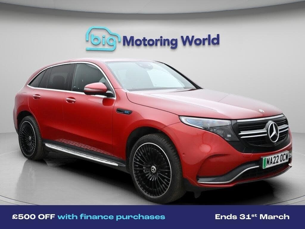 £500 towards your finance depo-Our Mercedes-Benz EQC comes with optional extras worth £895. Specification includes a range of fantastic features including £500 towards your finance deposit, Comfort Pack, Premium Plus, All Wheel Drive, Head up Display, 21'' Alloy Wheels, Leather Seats, Air Suspension, Apple CarPlay, AMG body styling Specification information is supplied by CAPHPI and may vary to the actual car. This data does not form any part of a buying contact. Please check specification prior to purchase in-store. The MOT is valid until March 2027, visit bigmotoringworld.co.uk for more photos, a 360 tour, service history and a free HPI report.Were BIG on peace of mind and this Red Mercedes-Benz EQC has completed our comprehensive 200 point inspection and passed all checks. Its ready for you to drive away with immediate collection in-store. We include a 90-day warranty as standard plus an option to extend for up to 3 years.Reserve this car exclusively for you, safely and securely at bigmotoringworld.co.uk, with a fully refundable £99 deposit. Test drive before you buy, with no commitment, no hassle and a completely haggle free experience. Still searching and want to see thousands more cars? We are BIG on choice with over 8000 cars to choose from.Visit our award winning web site bigmotoringworld.co.uk.Were Big Motoring World and were BIG on what matters to you.