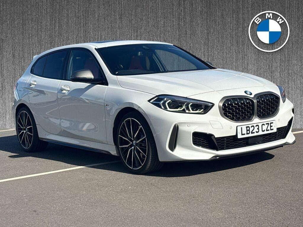 M Performance Exhaust System with Valve Control and Minimised Exhaust Back Pressure, Cupholders - Two Front Centre Console, Alpine White, M Sport Steering, Enhanced Bluetooth with Wireless Charging, DAB Digital Radio, Side Armrests - Front and Rear Integrated into Door Trim, Luggage Compartment Package, Sun Visors with Vanity Mirrors and Insert Tab, Performance Control, Personal Profile, Larger Capacity Fuel Tank, Start-Stop Button - Illuminated in Centre Console with Keyless Engine Start and Auto Start-Stop Deactivation Button, BMW Connected Package Professional, Automatically Dimming Rear View Mirror, Heat Protection Glazing with Green Tint, Steering Column with Manual Reach and Rake Adjustment, Servotronic Steering, Rear Seat Backrest with Manual 60-40 Split Folding with 3 Top Tether Clips Integrated on Rear of Seat Panels, M Sport Brakes with Blue Calipers, Preparation For High-Beam Assistant, Rear Window Wiper, Electric Handbrake, ECO PRO Mode, Harman Kardon Surround Audio Sound System, M Sport Steering Wheel, Three-Point Seat Belts - All Seats, Bluetooth Hands Free with USB Audio Interface, Seat Belt Security Check for Driver and Front Passenger, BMW Mobility Tyre Sealing System, Two Tone Horn, Check Control Warning System for Monitoring of Lights and Door-Luggage Compartment Open Warning, M135i Pro Pack, Tyres - Reduced Rolling Resistance, Mirror Caps - Cerium Grey, M Seat Belts, Rear Fog Light, Head-Up Display, High Level Third Brake Light, Automatic Windscreen Wipers and Headlights, Exhaust Tailpipe - Cerium Grey with Bevelled Finish - Twin - Round 100mm - Left and Right Split, Park Assistant, Seat Belt Warning if Driver Starts Ignition without Putting on Seatbelt, Childproof Locking System - Rear Doors and Electric Windows, Shark Fin, Storage Features, Model Designation on Electric Bootlid, Steering Wheel - Gearshift Paddles, Seat Heating for Driver and Front Passenger, BMW ConnectedDrive Online Services, Locking Wheel Bolts, M Sport Suspension, Remote Control Key x2, Central Locking Switch - Doors - Fuel Filler Cap - Luggage Compartment, Multifunction Controls for Steering Wheel, BMW Live Cockpit Professional, 12V Power Socket in Centre Console Front with Blanking Plug, Bumper System Front and Rear - Replaceable Deformation Elements for Impacts Up to 9mph, Optimum Shift Indicator, Armrest - Front Centre, Perforated Dakota Leather - Magma Red with Grey Highlight, Visible VIN, Dead-locking Function System to all Doors, Side Impact Protection, Alarm System - Thatcham 1 with Remote Control and Engine Immobiliser, Adaptive LED Headlights, 19in Alloy Wheels - M Double-Spoke Style 552 - Bi-Colour, Electric Windows - Front and Rear with Open-Close Fingertip Control - Trap Release and Child Lock Function, LED Headlights, Child Seat ISOFIX Attachment For The Two Outer Rear Seats And Front Passenger Seat, Front Windscreen Wipers with Integrated Washer Jets, Launch Control, Integrated Owners Handbook - Within iDrive Menu, Panoramic Glass Sunroof, Attentiveness Assistant, Air Conditioning Automatic with Two-Zone Control, M Sport Aerodynamic Package, Airbags, Crash Sensor, Welcome Light, Extended Lighting, 18in Alloy Wheels - M Double-Spoke Style 556 - Bi-Colour, Front M Sport Seats, Exterior Mirrors - Electrically Folding with Anti Dazzle, Extended Storage, Drive-Away Locking System on All Doors-Luggage Compartment - Can Be De-Activated in iDrive Settings, Bluetooth - Audio Streaming - with Compatible Devices, Technology Pack, First Aid Kit and Warning Triangle, Front and Rear Parking Sensors, BMW TeleServices, Exterior Parts in Body Colour, Drive Performance Control with ECO PRO and Comfort Modes, TPMS - Tyre Pressure Monitoring System, OBC - On-Board Computer, M Rear Spoiler, M Sport Steering with M135i xDrive Specific Settings, Cruise Control with Brake Function and Speed Limiter, DSC - Dynamic Stability Control Plus, BMW Emergency Call, Kidney Grille in Cerium Grey with Mesh Design, Sun Protection Glazing, Glove Box, Exterior Trim - High Gloss Shadowline, HiFi Loudspeaker System, Door Sill Finishers with M135i Designation - Front Only, Rear Seat Headrests - Three, Grab Handles - Integrated in Roof Linings - Four, Headlining - Anthracite, Active Guard Plus, M Logo Designation - Side - Cerium Grey, Reversing Light in Rear Light Clusters, Floor Mats - Velour, Interior Lighting, Direction Indicator Side Lights Integrated in Exterior Mirrors, EPS - Electric Power Steering, Oil Sensor For Level and Grade, Illuminated Boston Interior Trim