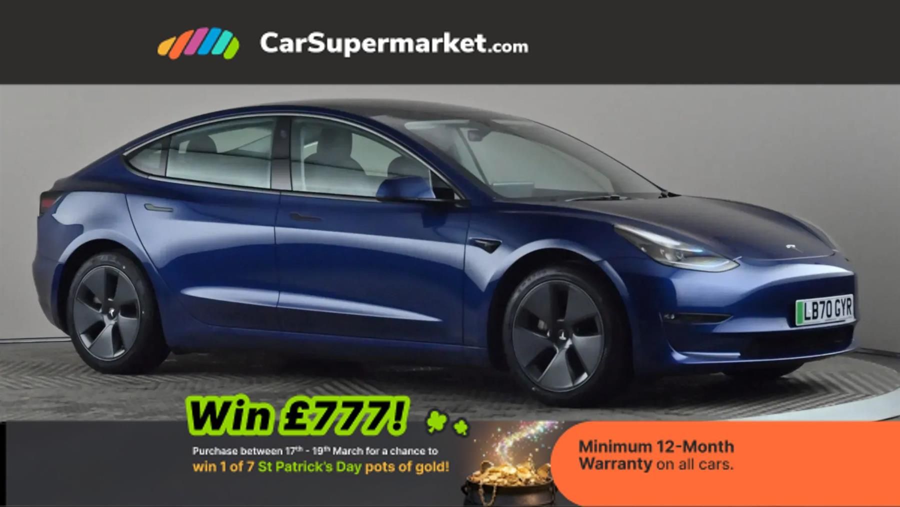 Adaptive Cruise Control, Cruise Control, Blind Spot Monitoring, Lane Departure Warning, Sat Nav, Traffic Sign Recognition, Digital Radio, Bluetooth, Keyless Entry;With only one owner and a remarkably low mileage of 19896 miles for its 2020 registration, this Tesla Model 3 Long Range presents an exceptional ownership proposition. As a fully electric vehicle, it boasts a substantial 78 kWh battery, offering an impressive maximum range of 360 miles when new. This Four Wheel Drive model is equipped with convenient 2 Zone Climate Control, Adaptive Cruise Control for relaxed journeys, and comprehensive parking assistance including front and rear parking sensors and a park assist camera. Its MOT remains valid until December 2026, and a clear vehicle history check confirms its sound condition. The highlights of this Tesla Model 3 Long Range truly set it apart. Its acceleration is particularly noteworthy, achieving 0 to 60 mph in a swift 4.2 seconds, demonstrating its dynamic performance. Furthermore, the large boot space provides ample practicality for everyday needs and longer trips. For charging, a full charge at home using a 7kW charger takes approximately 12 hours, while rapid public charging can replenish the battery from empty to 80% in as little as 26 minutes, making longer journeys more manageable. These features combine to offer a superior driving and ownership experience compared to other vehicles in its class.