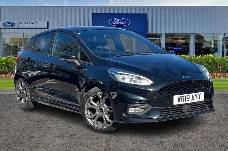 Bluetooth system, Electric power steering, Ford easy fuel, Trip computer, Body colour bumpers, Body colour door handles, Body colour large rear spoiler, Chrome door handles, Chrome lower window surround, Cornering front fog lights, Electric front windows/one touch facility, Privacy glass, Quickclear heated windscreen, Rear wiper, Rugged body styling kit with active front wing badges, Tinted glass, Unique ST-Line upper grille & full bodystyling kit with ST-Line wing badges, 12V Accessory socket in centre console, 3 spoke flat bottomed leather steering wheel, 60/40 split folding rear seat, Adjustable head restraints, Black headlining, Boot carpet, Centre console with armrest and illuminated cupholders, Chrome inner door handles, Cloth upholstery, Footwell illumination, Front and rear velour floor mats, Front map reading lights, Front seat and rear pockets, Height adjustable driver's seat, Illuminated glovebox, Leather gear knob, Leather trimmed handbrake handle, Load area light, Manual air conditioning, Overhead console with sunglasses holder, Pollen filter, Rake/reach adjustable steering wheel, Rear centre head restraint, Sports front seats, Sports pedals, 3 point seatbelts on all rear seats, ABS+EBA, Curtain airbags, Driver and passenger airbags, Drivers knee airbag, Electronic stability control with hill start assist, Front passenger airbag deactivation, Front side airbags, Seatbelt warning, Tyre pressure monitoring system