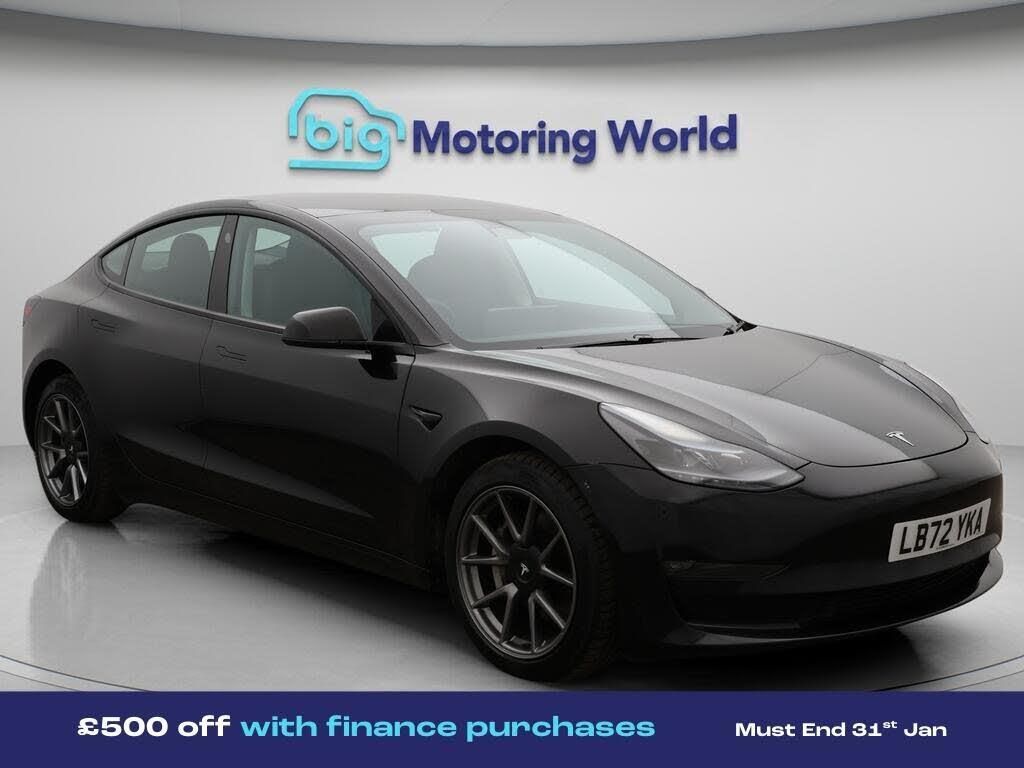 £500 towards your finance depo-Our Tesla Model 3 is finished in Black. Specification includes a range of fantastic features including £500 towards your finance deposit, Panoramic Roof, All Wheel Drive, Leather Seats, Adaptive Cruise Control, Satellite Navigation, Heated Seats, Wireless Phone Charging, Rear View Camera, Heated Rear Seats Specification information is supplied by CAPHPI and may vary to the actual car. This data does not form any part of a buying contact. Please check specification prior to purchase in-store. The MOT is valid until December 2026, visit bigmotoringworld.co.uk for more photos, a 360 tour, service history and a free HPI report.Were BIG on peace of mind and this Black Tesla Model 3 has completed our comprehensive 200 point inspection and passed all checks. Its ready for you to drive away with immediate collection in-store. We include a 90-day warranty as standard plus an option to extend for up to 3 years.Reserve this car exclusively for you, safely and securely at bigmotoringworld.co.uk, with a fully refundable £99 deposit. Test drive before you buy, with no commitment, no hassle and a completely haggle free experience. Still searching and want to see thousands more cars? We are BIG on choice with over 8000 cars to choose from.Visit our award winning web site bigmotoringworld.co.uk.Were Big Motoring World and were BIG on what matters to you.