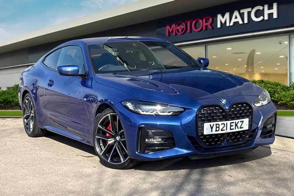 This sleek and premium BMW 4 Series 2.0 420d MHT M Sport xDrive is finished in blue and powered by a 2.0 diesel mild-hybrid engine producing 190 PS, paired with a smooth automatic transmission. Combining efficiency with performance, it offers a refined and responsive driving experience with the added confidence of xDrive all-wheel drive. The exterior design is bold and athletic, enhanced by the M Sport styling package and aerodynamic body lines. This example also benefits from the M Sport Pro Package, BMW Individual Lights Shadowline, and M Sport brakes with red callipers, adding both visual impact and performance appeal. It sits on 18-inch alloy wheels, while sun protection glazing and high-gloss shadowline trim complete the premium finish. The 4 Series remains practical for everyday use. The boot provides useful space, while the split-folding rear seats and through-loading system allow you to carry longer items. The interior is finished with Vernasca leather in black with blue contrast stitching, creating a sporty and premium atmosphere. Heated front sport seats and front lumbar support ensure comfort on longer journeys, while the heated steering wheel adds extra comfort during colder weather. The three-zone automatic climate control system helps maintain a warm and comfortable cabin environment for all occupants. Technology is a key highlight, featuring BMW Live Cockpit Professional with navigation, media and connectivity functions. The system also includes sport displays, driving modes and configurable driver assistance settings. A Harman Kardon sound system provides excellent audio quality, while parking assistant with camera and sensors make manoeuvring simple. By choosing this vehicle, which is ULEZ and CAZ compliant, you and the environment will benefit from reduced emissions, cleaner air in urban areas, and lower running costs. As part of the Motor Match range, this vehicle also comes with a 1,000-mile or 30-day warranty. To find out more or reserve this vehicle today, simply give our friendly sales team a call!