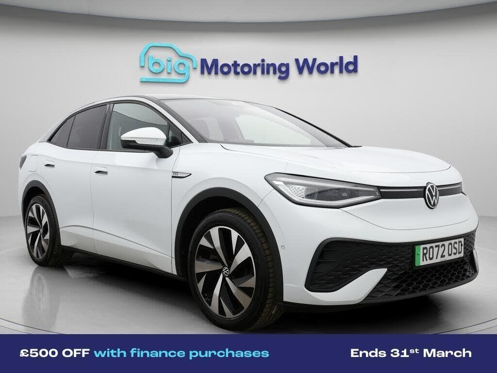 £500 towards your finance depo-Our Volkswagen ID.5 is finished in White. Specification includes a range of fantastic features including £500 towards your finance deposit, Apple CarPlay, Privacy Glass, Ambient Lighting, Climate Control, Voice Control, DAB Radio , Rear Spoiler, USB Interface, Electric Windows Specification information is supplied by CAPHPI and may vary to the actual car. This data does not form any part of a buying contact. Please check specification prior to purchase in-store. The MOT is valid until September 2026, visit bigmotoringworld.co.uk for more photos, a 360 tour, service history and a free HPI report.Were BIG on peace of mind and this White Volkswagen ID.5 has completed our comprehensive 200 point inspection and passed all checks. Its ready for you to drive away with immediate collection in-store. We include a 90-day warranty as standard plus an option to extend for up to 3 years.Reserve this car exclusively for you, safely and securely at bigmotoringworld.co.uk, with a fully refundable £99 deposit. Test drive before you buy, with no commitment, no hassle and a completely haggle free experience. Still searching and want to see thousands more cars? We are BIG on choice with over 8000 cars to choose from.Visit our award winning web site bigmotoringworld.co.uk.Were Big Motoring World and were BIG on what matters to you.