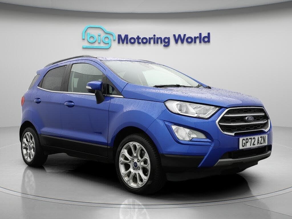 17'' Alloy Wheels,Part Leather-Our Ford EcoSport comes with optional extras worth £1,175. Specification includes a range of fantastic features including 17'' Alloy Wheels, Part Leather Seats, Apple CarPlay, Bang & Olufsen Speakers, Satellite Navigation, Ford SYNC, Privacy Glass, Heated Windscreen, Rear View Camera, Internet Specification information is supplied by CAPHPI and may vary to the actual car. This data does not form any part of a buying contact. Please check specification prior to purchase in-store. The MOT is valid until February 2027, visit bigmotoringworld.co.uk for more photos, a 360 tour, service history and a free HPI report.Were BIG on peace of mind and this Blue Ford EcoSport has completed our comprehensive 200 point inspection and passed all checks. Its ready for you to drive away with immediate collection in-store. We include a 90-day warranty as standard plus an option to extend for up to 3 years.Reserve this car exclusively for you, safely and securely at bigmotoringworld.co.uk, with a fully refundable £99 deposit. Test drive before you buy, with no commitment, no hassle and a completely haggle free experience. Still searching and want to see thousands more cars? We are BIG on choice with over 8000 cars to choose from.Visit our award winning web site bigmotoringworld.co.uk.Were Big Motoring World and were BIG on what matters to you.