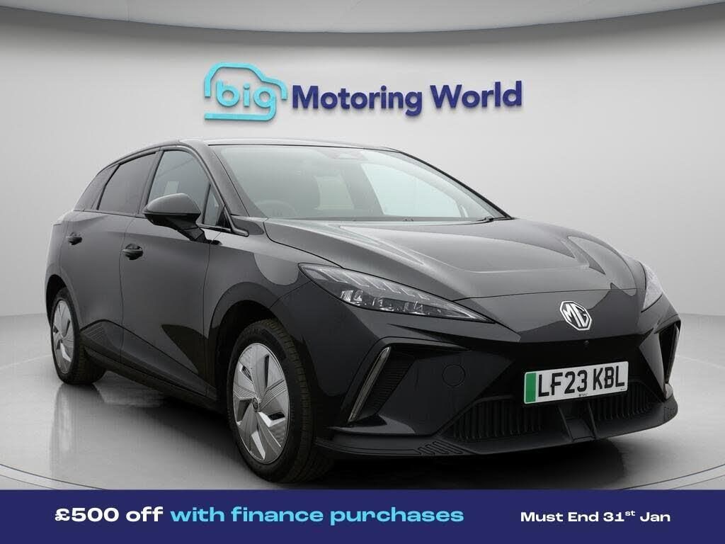 £500 towards your finance depo-Our MG MG4 is finished in Black. Specification includes a range of fantastic features including £500 towards your finance deposit, 18'' alloy wheels, Leather Seats, Apple CarPlay, Adaptive Cruise Control, Lane Assist, Android Auto, Satellite Navigation, Privacy Glass, Heated Seats Specification information is supplied by CAPHPI and may vary to the actual car. This data does not form any part of a buying contact. Please check specification prior to purchase in-store. The MOT is valid until March 2027, visit bigmotoringworld.co.uk for more photos, a 360 tour, service history and a free HPI report.Were BIG on peace of mind and this Black MG MG4 has completed our comprehensive 200 point inspection and passed all checks. Its ready for you to drive away with immediate collection in-store. We include a 90-day warranty as standard plus an option to extend for up to 3 years.Reserve this car exclusively for you, safely and securely at bigmotoringworld.co.uk, with a fully refundable £99 deposit. Test drive before you buy, with no commitment, no hassle and a completely haggle free experience. Still searching and want to see thousands more cars? We are BIG on choice with over 8000 cars to choose from.Visit our award winning web site bigmotoringworld.co.uk.Were Big Motoring World and were BIG on what matters to you.