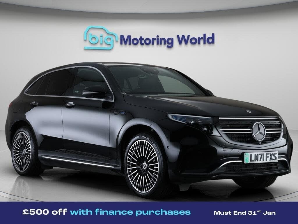 £500 towards your finance depo-Our Mercedes-Benz EQC comes with optional extras worth £1,435. Specification includes a range of fantastic features including £500 towards your finance deposit, Comfort Pack, Premium Plus, Panoramic Roof, All Wheel Drive, Head up Display, 21'' Alloy Wheels, Leather Seats, Air Suspension, Apple CarPlay Specification information is supplied by CAPHPI and may vary to the actual car. This data does not form any part of a buying contact. Please check specification prior to purchase in-store. The MOT is valid until January 2027, visit bigmotoringworld.co.uk for more photos, a 360 tour, service history and a free HPI report.Were BIG on peace of mind and this Black Mercedes-Benz EQC has completed our comprehensive 200 point inspection and passed all checks. Its ready for you to drive away with immediate collection in-store. We include a 90-day warranty as standard plus an option to extend for up to 3 years.Reserve this car exclusively for you, safely and securely at bigmotoringworld.co.uk, with a fully refundable £99 deposit. Test drive before you buy, with no commitment, no hassle and a completely haggle free experience. Still searching and want to see thousands more cars? We are BIG on choice with over 8000 cars to choose from.Visit our award winning web site bigmotoringworld.co.uk.Were Big Motoring World and were BIG on what matters to you.