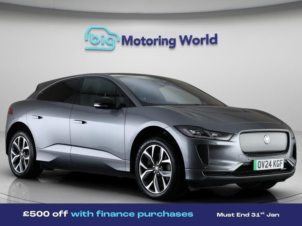 £500 towards your finance depo-Our Jaguar I-PACE is finished in Grey. Specification includes a range of fantastic features including £500 towards your finance deposit, Panoramic Roof, All Wheel Drive, Head up Display, Apple CarPlay, Electric Seats, Meridian Speakers, Lane Assist, Android Auto, Satellite Navigation Specification information is supplied by CAPHPI and may vary to the actual car. This data does not form any part of a buying contact. Please check specification prior to purchase in-store. The MOT is valid until March 2027, visit bigmotoringworld.co.uk for more photos, a 360 tour, service history and a free HPI report.Were BIG on peace of mind and this Grey Jaguar I-PACE has completed our comprehensive 200 point inspection and passed all checks. Its ready for you to drive away with immediate collection in-store. We include a 90-day warranty as standard plus an option to extend for up to 3 years.Reserve this car exclusively for you, safely and securely at bigmotoringworld.co.uk, with a fully refundable £99 deposit. Test drive before you buy, with no commitment, no hassle and a completely haggle free experience. Still searching and want to see thousands more cars? We are BIG on choice with over 8000 cars to choose from.Visit our award winning web site bigmotoringworld.co.uk.Were Big Motoring World and were BIG on what matters to you.