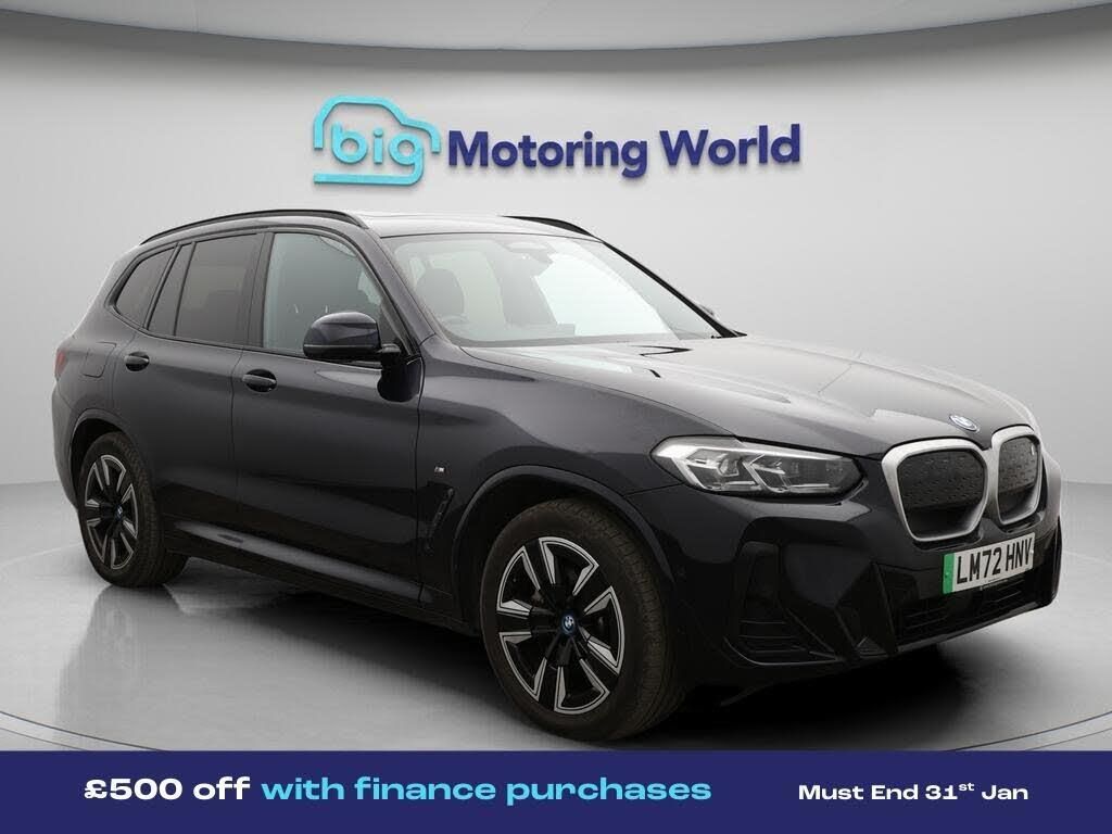 £500 towards your finance depo-Our BMW iX3 comes with optional extras worth £850. Specification includes a range of fantastic features including £500 towards your finance deposit, Sun Protection Pack, 19'' Alloy wheels, Leather Seats, Apple CarPlay, Adaptive Cruise Control, Electric Seats, Harman Kardon Speakers, Electric Panoramic Roof, M Sport Bodykit Specification information is supplied by CAPHPI and may vary to the actual car. This data does not form any part of a buying contact. Please check specification prior to purchase in-store. The MOT is valid until August 2026, visit bigmotoringworld.co.uk for more photos, a 360 tour, service history and a free HPI report.Were BIG on peace of mind and this Black BMW iX3 has completed our comprehensive 200 point inspection and passed all checks. Its ready for you to drive away with immediate collection in-store. We include a 90-day warranty as standard plus an option to extend for up to 3 years.Reserve this car exclusively for you, safely and securely at bigmotoringworld.co.uk, with a fully refundable £99 deposit. Test drive before you buy, with no commitment, no hassle and a completely haggle free experience. Still searching and want to see thousands more cars? We are BIG on choice with over 8000 cars to choose from.Visit our award winning web site bigmotoringworld.co.uk.Were Big Motoring World and were BIG on what matters to you.