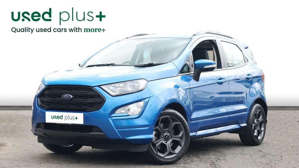 The Ford EcoSport is a compact SUV designed for drivers who want elevated driving position, sporty styling, and everyday practicality in an easy-to-handle package. This ST-Line version adds a more dynamic edge, making it stand out in the small SUV segment. Powered by Fords 1.0 EcoBoost engine, it delivers a lively and efficient drive thats ideal for both urban commuting and longer journeys. The light steering and compact dimensions make it effortless to manoeuvre, while sports suspension and selectable features give it a more engaging feel than most rivals. Inside, the EcoSport offers a practical and well-equipped cabin. The SYNC 3 system with Apple CarPlay and Android Auto keeps you connected, while the 8" touchscreen and digital driver information display ensure everything is easy to access. Comfort features like automatic climate control, ambient lighting, and a heated Quickclear windscreen make daily driving simple and stress-free. Technology and safety are strong points, with rear parking sensors and camera, traffic sign recognition, lane support systems, and autonomous emergency braking all helping to improve confidence behind the wheel. Fords driver assistance features are designed to make every journey safer and more relaxed. Practicality is a key strength too. The split-folding rear seats, adjustable boot floor, roof rails, and multiple storage compartments make it flexible enough for shopping trips, commuting, or weekends away. On the outside, the ST-Line styling really elevates the look. A sporty body kit, black detailing, large rear spoiler, LED daytime running lights, and 17 alloy wheels give it a bold and athletic road presence. This EcoSport ST-Line is a great choice if you want a compact SUV that blends practicality, technology, and sporty character into one affordable and easy-to-live-with package.-The Ford EcoSport is a compact SUV designed for drivers who want elevated driving position, sporty styling, and everyday practicality in an easy-to-handle package. This ST-Line version adds a more dynamic edge, making it stand out in the small SUV segment. Powered by Fords 1.0 EcoBoost engine, it delivers a lively and efficient drive thats ideal for both urban commuting and longer journeys. The light steering and compact dimensions make it effortless to manoeuvre, while sports suspension and selectable features give it a more engaging feel than most rivals. Inside, the EcoSport offers a practical and well-equipped cabin. The SYNC 3 system with Apple CarPlay and Android Auto keeps you connected, while the 8" touchscreen and digital driver information display ensure everything is easy to access. Comfort features like automatic climate control, ambient lighting, and a heated Quickclear windscreen make daily driving simple and stress-free. Technology and safety are strong points, with rear parking sensors and camera, traffic sign recognition, lane support systems, and autonomous emergency braking all helping to improve confidence behind the wheel. Fords driver assistance features are designed to make every journey safer and more relaxed. Practicality is a key strength too. The split-folding rear seats, adjustable boot floor, roof rails, and multiple storage compartments make it flexible enough for shopping trips, commuting, or weekends away. On the outside, the ST-Line styling really elevates the look. A sporty body kit, black detailing, large rear spoiler, LED daytime running lights, and 17 alloy wheels give it a bold and athletic road presence. This EcoSport ST-Line is a great choice if you want a compact SUV that blends practicality, technology, and sporty character into one affordable and easy-to-live-with package.