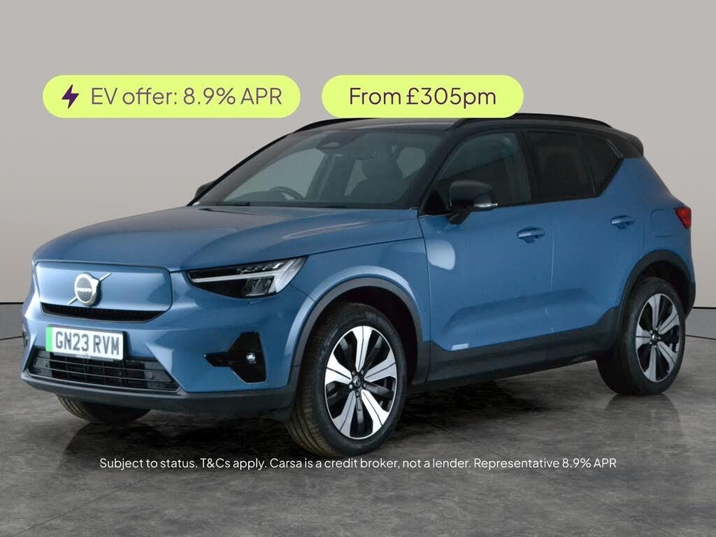 Experience the future of driving with this stylish blue Volvo XC40 Recharge. Optional retractable towbar adds extra versatility, making it perfect for getaways or extra gear. Enjoy a smooth electric drive with advanced features like adaptive cruise control, LED headlights, heated seats and steering wheel, and seamless Apple CarPlay integration. Relax in comfort with keyless entry, climate pack, and 19in diamond cut alloy wheels. Safety is top-notch with blind spot assist, driver assist, park assist, and lane departure warning. Discover effortless urban sophistication in a standout SUV. 2 services recorded, last serviced on 05/09/2025 at 37,335 miles. MOT to 02/03/2027. Visit our website for service history, online valuation, full vehicle specification plus multiple images. This vehicle is VAT qualifying. Any feature/option specified here is from 3rd party data. We cannot guarantee the accuracy of any specification supplied by a 3rd party. We recommend that you physically check the specification of the vehicle on site prior to purchase. This information does not form part of the buying contract. Terms & Conditions apply. We have over 2,000 cars available from our 10 national branches, check our website to see all our stock. Our Trustpilot rating is 4.4/5 with over 9,000 reviews.