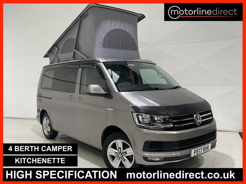 FINANCE & PART EXCHANGE AVAILABLE* - Only 2 registered keepers & 74,333 miles from new, SERVICE HISTORY, 2 KEYS- this FANTASTIC VOLKSWAGEN CALIFORNIA BLUEMOTION TECH OCEAN CAMPER VAN AUTOMATIC is finished in stunning sports Mojave Beige metallic & is complimented with contrasting sports trim and extends itself to the following additional features - 4 SEATS - 4 BERTH - electric pop up roof with double bed, rear fold out seat bed, 2 x stowaway camping chairs, refrigerator unit, kitchenette unit with 2 gas hobs, sink, cutlery drawer & underneath storage, rear storage cupboards, awning rails, utility hook up, tow bar with 13 pin electric plug, fold out rear table, front screen blind, rear window blind, reverse camera, 3 zone climate control / automatic air conditioning, trip computer, cruise control, leather trimmed multi function steering wheel with paddle shift, front & rear park distance control, driver & passenger heated front seats, Bluetooth telephone prep, DAB digital radio, media input, App Connect - Apple CarPlay / Android Auto / Mirror Link, driver manual sliding side door, sliding side windows, side window wind deflectors, privacy glass, driver alert system, lumbar support, electric folding & heated exterior mirrors, power assisted steering, abs, airbags, electric mirrors, electric windows, remote locking, VW 17'' sports alloy wheels, VW anti theft system. ***FINANCE AVAILABLE - subject to status. T&C's apply.***PART EXCHANGE AVAILABLE***ALL VEHICLES ARE HPI & NATIONAL MILEAGE REGISTER CHECKED***THE AA WARRANTY IS SUBJECT TO TERMS & CONDITIONS AND DOES NOT COVER VEHICLES THAT ARE BEING USED FOR TAXI, PRIVATE HIRE, CHAUFFEURING PURPOSES OR FOR REWARD.***Please note, that the specifications/components/features etc. are generic to that vehicle of the type advertised but may not be included in the specific vehicle that is for sale. It is for the intended purchaser to satisfy themselves of the presence or absence of any specifications/components/features before sale.-4 BERTH CAMPER-KITCHENETTE-SPECS INCLUDE AMG M SPORT S LINE QUATTRO 4X4 AWD NAV LEATHER SUNROOF PANORAMIC HEAD UP & ULEZ MODELS