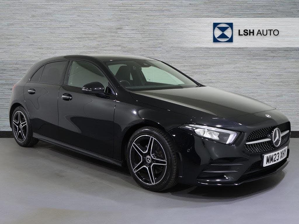 This 2023 Mercedes-Benz A Class A180 AMG Line (Premium) is a manufacturer approved vehicle with a full dealership service history, most recently serviced on 2025-07-04 at 13431 miles, and benefits from an MOT valid until April 2027 and 12 months warranty. This Euro 6 compliant, 1.3L petrol engine model has covered a low mileage of just 19306 miles for its age. It comes equipped with the Premium Package, featuring keyless entry, and boasts LED High Performance Headlamps with integrated LED Daytime Running Lights. Inside, you'll find a Mercedes-Benz Sound System with 100W output, heated front seats for added comfort, and dual Bluetooth interfaces for seamless connectivity.The acceleration of this A Class is noteworthy, reaching 0-62mph in a brisk 8.8 seconds, demonstrating its responsive performance. The generous boot space offers practicality for everyday needs and longer journeys, making it a versatile choice. These features, combined with its low mileage and comprehensive service record, position this Mercedes-Benz A Class as a superior option compared to similar vehicles on the market.-PREMIUM AMG LINE HEATED SEATS-Mercedes-Benz A Class A180 AMG Line Premium 5dr Auto-LSH Auto UK Ltd - An LSH Group Company. The Worlds Largest Retailer of Mercedes-Benz Passenger Cars