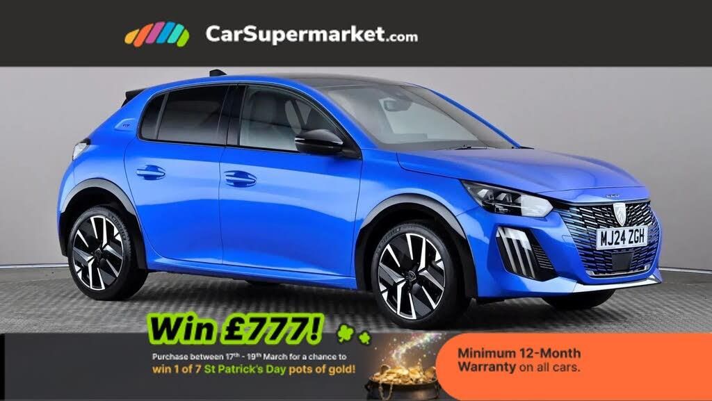 Bluetooth telephone facility,Drive mode select (Eco/Normal/Sport),Driver attention warning,Emergency call service,Exterior temperature indicator with ice warning,Front and rear parking sensors,Multi function trip computer,PEUGEOT i-Cockpit with 10" configurable 3D colour head up instrument panel,PEUGEOT i-Cockpit with 10" HD capacitive colour touchscreen,PEUGEOT i-Cockpit with compact steering wheel,PEUGEOT SOS and assistance,Push button start,Smart phone docking station,Smartphone 15W wireless charging plate,Speed limit recognition and recommendation,Start/stop system,Wireless mirror screen with apple carplay and android auto,6 Speakers - 2 tweeters and 4 door speakers,DAB Digital radio,Peugeot i-connect infotainment system - 10in HD touchscreen,AM/FM/DAB digital radio, Wifi Mirroring, Bluetooth & 2 USB connection,USB-A socket (x1) and USB-C socket (x1) - rear,USB-C data and charge socket and USB-C charge socket in front,Voice recognition for radio, navigation and telephony features,2 X Rear number plate lights,Acoustic windscreen,Antenna - Gloss Black 'fin' design,Automatic hazard light activation upon heavy brake application,Body coloured exterior door handles,Dark tinted rear side and tailgate windows,Diamond black rear spoiler (roof),Door sills protection with PEUGEOT signature lettering,Electric heated and power folding door mirrors with courtesy floor lighting,Frameless electrochrome interior rear view mirror,Full LED headlights with automatic height adjustment and PEUGEOT smartbeam assist,Gloss black B pillar,Gloss black door mirror shells,Gloss black front bumper grille with body colour accents,Gloss black rear cluster connecting strip,Gloss black wheel arch extensions,Gloss black window weatherstrips,GT model designation badging on C pillar,GT model designation badging on tailgate,Headlights left on audible warning,LED 3 claw horizontal rear lighting signature (with daylight function) and LED brake lights, indicators and reversing lights,LED daytime running lights with distinctive 3 claw signature,LED front indicators,LED third brake light,Model designation badges front and rear in basalt grey,One touch electric front/rear windows with pinch protection,Rear bumper with gloss black finish,Rear reversing lights,Rear side wing doors,Rear windscreen wiper triggered automatically in reverse gear,Roof spoiler,Tailgate with heated rear windscreen and wiper blade,Variable front intermittent wipers,1/3 to 2/3 split folding rear seats,12V socket,3 seat bench in 2nd row,8 Colour personalisable ambient lighting,Adamite green contrast stitching to front and rear armrest, front centre console, dashboard facia,Aluminium pedals,Automatic mono zone climate control air condition,Boot lighting,Driver and front passenger dynamic seats,Driver and front passenger seat manual adjustment in longitudinal and back rest angle,Driver and front passenger seat mechanical height adjustment,Driver and passenger sun visors, front footwells and central storage with LED lighting,Electric power steering with reach and rake adjustable steering column,Front centre armrest with storage compartment,Front LED interior light, front LED reading spotlights(x2), rear LED reading spotlight(x2),Gear shift indicator,High centre console with 2 cup holders,Map pockets on the backs of the front seats,Multi function full grain perforated leather steering wheel with adamite green stitch detail and 'GT' emblem,Passenger seat height adjuster,Rear centre headrest,Roof lining - Mistral black,Seatbelt unfastened on the move audible and visual alert for front and rear seats,Single front passenger seat,Visibility pack - 208,2x Isofix child seat fitting on outer rear seats,3 rear 3 point seatbelts,ABS (Anti-lock Braking System) with EBD (Electronic Brakeforce Distribution) and EBA (Emergency Braking Assistance),Active safety brake with night function/cyclists/pedestrians,Child locking functionality on rear doors,Driver and front passenger airbag with passenger airbag deactivation,Driver/front passenger side airbags,Electric parking brake,ESP with Hill Assist,Front and rear curtain airbags,Front and rear disc brakes,Front optimised safety headrests and 3 x rear retractable headrests with height adjustable,Front three point retractable seatbelts with force limiters,Remote plip(x2) for locking, unlocking, includes emergency key blade,Tyre pressure monitoring system,Acoustic vehicle alert system (AVAS),Alarm - Connected, volumetric ,perimetric, anti lift sensor,Automatic door locking when moving off,Deadlock,Electronic code immobiliser,Peugeot Open and Go System,Remote central locking,Carbon effect Dashboard, front and rear door panel finish,17" Yanaka two tone diamond cut alloy wheels wheels includes gloss black inserts,Space saver spare wheel