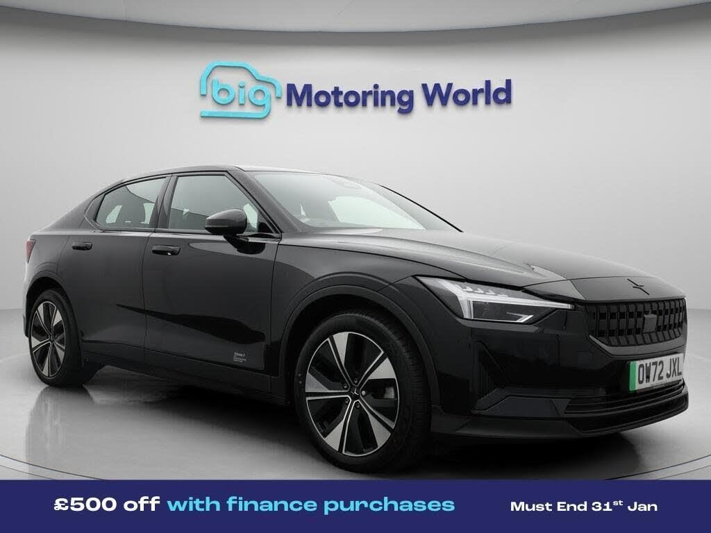 £500 towards your finance depo-Our Polestar Polestar 2 is finished in Black. Specification includes a range of fantastic features including £500 towards your finance deposit, Dynamic Chassis Control, 18'' alloy wheels, Electric Seats, Heated Seats, Rear View Camera, Memory Seats, Internet, Bluetooth, Parking Sensors Specification information is supplied by CAPHPI and may vary to the actual car. This data does not form any part of a buying contact. Please check specification prior to purchase in-store. The MOT is valid until February 2027, visit bigmotoringworld.co.uk for more photos, a 360 tour, service history and a free HPI report.Were BIG on peace of mind and this Black Polestar Polestar 2 has completed our comprehensive 200 point inspection and passed all checks. Its ready for you to drive away with immediate collection in-store. We include a 90-day warranty as standard plus an option to extend for up to 3 years.Reserve this car exclusively for you, safely and securely at bigmotoringworld.co.uk, with a fully refundable £99 deposit. Test drive before you buy, with no commitment, no hassle and a completely haggle free experience. Still searching and want to see thousands more cars? We are BIG on choice with over 8000 cars to choose from.Visit our award winning web site bigmotoringworld.co.uk.Were Big Motoring World and were BIG on what matters to you.