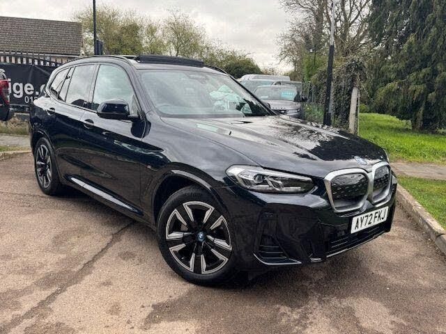 19in Alloy Wheels - Aerodynamic - Jet Black with Bi-Colour Inserts, ABS - Anti Lock Braking System, Active Guard Plus, Active Protection, Adaptive LED Headlights, Adaptive Suspension, Air Breather with BMW M logo, Air Conditioning - Automatic, Airbags - Driver and Front Passenger, Airbags - Front Side for Driver and Passenger, Airbags - Head - Front and Rear, Alarm System, Ambient Lighting, Armrests, Attentiveness Assistant, Automatic Operation of Tailgate, Automatic Start-Stop Button, BMW Connected Package Professional, BMW ConnectedDrive Online Services, BMW Legal Emergency Call, BMW Live Cockpit Professional, BMW TeleServices, Blue Ring Around BMW Logos, Brake Pad Wear Indicator, Bumper System Front and Rear - Replaceable Deformation Elements for Impacts Up to 15kmh, CBC - Cornering Brake Control, Centre Lock Switch, Charging Cable - Mode 3 - 5m, Closing System with Central Locking, Crash Sensor, Cup Holders - Front x2, DAB Digital Radio, DSC - Dynamic Stability Control Plus, DTC - Dynamic Traction Control, Deletion Lumbar Support-Width Adjustment Passenger Side, Door Sill Strips, Driving Assistant Professional, Driving Experience Switch, Dynamic Brake Lights, Electric Memory Seats, Electric Windows - Front, Electro Mechanical Parking Brake, Electronic Vehicle Immobiliser, Enhanced Bluetooth with Wireless Charging, Extended Storage, Exterior Mirrors - Electrically Folding with Anti Dazzle, Exterior Trim - High-Gloss Shadowline, Floor Mats - Velour, Follow Me Home Headlight Function, Front Bumper - M Sport with iX3 Specific Design with Blue Contents, Front and Rear Parking Sensors, Galvanic Embellisher for Controls, Glove Compartment - Lockable, Headlights - Beam Throw Control, Headlining - M Anthracite, Headrests - All Seats, Heat Protection Glazing with Green Tint, Heated Seats for Driver and Front Passenger, Heated Steering Wheel, High-Beam Assistant, Instrument Panel in Sensatec, Interior Rear-View Mirror with Automatic Anti-Dazzle Function, Interior Trim - High-Gloss Black with Pearl Chrome, Lashing Eyes in Luggage Compartment, Luggage Compartment Lights, M Aerodynamic Exterior, M Badging on Front Side - Left and Right, M Sport Leather Steering Wheel, M Sport Package, Non Smoker Package, Panoramic Glass Sunroof, Parking Assistant, Power Sockets, Power Steering - Electric, Preparation for Adaptive M Suspension, Rain Sensor with Automatic Headlight Activation, Rear Centre Armrest including Two Cupholders, Rear Diffuser in Blue, Reversing Assist Camera, Roof Rails - Shadow Line High Gloss - Black, Runflat Indicator, Safety Battery - Terminal Clamp, Seat Backrest Adjustment for Rear Seats, Seat Backrest with Width Adjustment, Seats - Front Sports, Servotronic Steering, Side Impact Protection, Split Folding Rear Seat, Steering Column Adjustment, Stereo Speaker System, Storage Options, Sun Protection Glass, Sun Visors with Vanity Mirrors and Ticket Holder, TPMS - Tyre Pressure Monitoring System, Third Brake Light Using LED Technology, Tyre Repair Kit, Warning Triangle, Washer Jets - Heated, Welcome Lighting, WiFi Hotspot, Widescreen Display, eDrive Exterior Sound, Model Specific Design Elements, Model Specific Design Elements, Towbar - Fully Electric, Vernasca Leather - Black with Blue Contrast Stitching, PANORAMIC OPENING SUNROOF