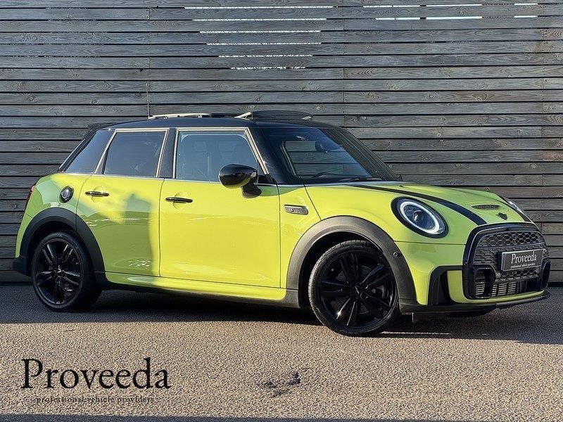 The list of features on this MINI Cooper S includes: Opening Pan Roof With Manually Sliding Blind | Heated Front Seats | Reversing Camera | Front & Rear Parking Sensors | DAB Radio | Bluetooth | Digital Cockpit | Black Spoiler | Black Mirror Covers | Black Handles | Black Bonnet Stripes | Twin Exhaust | LED Headlights | Wireless Phone Charging Tray | Privacy Glass | Sat Nav | Handbrake Lever | Leather Multifunction Steering Wheel | Zesty Green | 17" Gloss Black JCW 5 Twin Spoke Alloy Wheels | USB & C Points | Floor Mats | Touch Screen.