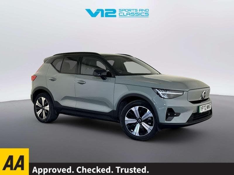 [Audio and Communications]12v Socket - Front Tunnel Console and Luggage Compartment, 9in Centre Console Portrait Touch Screen, Bluetooth Handsfree System, DAB - Digital Audio Broadcasting Radio, Google Automotive Services, High Performance Sound, Roof Antenna, Volvo Cars Services with App, Wireless-Inductive Mobile Phone Charging, [Drivers Assistance]Front Park Assist, Rear Park Assist, Rear Park Assist Camera, Road Sign Information Display, Tyre Pressure Monitoring System, [Exterior]19in Alloy Wheels - 5 Double Spoke - Diamond Cut - Black, Autodimming Exterior Rear View Mirrors, Autofolding Heated Power Door Mirrors, Black Stone - Pillars - Roof and Door Mirrors, Colour Co-Ordinated Front Covered Grille, Dark Tinted Windows - Rear Side Windows and Rear Screen, Front and Rear Power Windows, Recharge Embossed Rear Side Roof Pillar, Roof Rails - Integrated High Gloss Black, Roof Spoiler, Tyre Sealant Kit and Compressor, [Illumination]Automatic Headlight Levelling System, Automatic LED Headlights with Active High Beam incorporating Day Running Lights, Front LED Foglights, Home Safe and Approach Lighting, Puddle Lights, [Interior]12.3in Progressive Driver Display, 2-Zone Electronic Climate Control with Rear Air Vents - CleanZone Air Quality System with Pollen Filter, 3-Spoke Tailored Sports Steering Wheel, A-Pillar Parking Ticket Holder, Advanced Interior Air Cleaner PM 2.5, Autodimming Interior Mirror, Centre Console Cupholders and Storage, Climate Pack, Fixed Rear Seat Headrests, Front Footwell Illumination, Front Load Compartment - 31 Litres, Front Reading Lights and Theatre Lighting, Front Seat Cushion Extensions, Front Tunnel Pocket and Integrated Waste Bin, Glovebox Bag Hook, Glovebox Compartment Illumination, Handsfree Tailgate Opening-Closing, Heated Front Seats, Heated Rear Seats, Heated Steering Wheel, Height and Reach Adjustable Steering Column, Height and Tilt Adjustable Driver Seat, High Gloss Black Centre Tunnel and Centre Screen Surround Deco, Illuminated Vanity Mirrors with Ticket Holder, Load Protection Net, Luggage Compartment Illumination, Multi-Directional Lumbar Support, Origin Inlay, Power Driver Seat with Memory for Seat and Exterior Mirrors, Power Passenger Seat, Rain Sensor - Automatic Windscreen Wiper Activation, Rear Armrest with Cupholders, Recharge Tread Plates - Front, Steering Wheel Remote Infotainment Controls, Underfloor Luggage Compartment Storage, Versatile Split Folding Rear Seats - 60-40, Textile-Microtech - Charcoal-Graphite, [Paint]Sage Green, [Performance]7m 10amp Charge Cable with 3-Pin Plug and 4.5m 3-Phase 32 amp Type 2 - Mode 3 Charge Cable, Adjustable Steering Force, Heat Pump, Speed Limiter, Speed Sensitive Steering, Touring Chassis, [Safety and Security]Adaptive Brake Lights including High Level LED Brake Light, Anti-Theft Alarm including Immobiliser - Volume Sensor and Level Sensor, Care Key with User Defined Top Speed, City Safety, Driver Assistance - Pilot Assist and Adaptive Cruise Control, Driver Awareness, Driver Knee Airbag, Dual Stage Driver and Passenger Airbags, High Gloss Black Window Trim - Front and Rear Skidplate and Deco Lower Front Bumper, Hill Descent Control, Hill Start Assist, IC - Inflatable Curtains - Full Length, ISOFIX Attachment - Front Passenger and Outer Rear Seats, Key Integrated Remote Control Central Locking including Fuel Flap with Deadlocking System and Auto Open-Close Power Windows, Keyless Drive - Keyless Entry and Keyless Start, Lane Keeping Aid with Driver Alert Control, Low Speed Exterior Sound Speaker, Oncoming Lane Mitigation, Passenger Airbag Cut-Off Switch, Power Child Locks - Rear Doors, Private Locking for Tailgate, Run-Off Road Mitigation, Run-Off Road Protection, SIPS - Side Impact Protection System, SIPS Airbags - Front Seats, Seatbelt Reminder and Pretensioners, Slippery Road and Hazard Light Alert, Stability and Traction Control, Vehicle Deceleration Control, Visible VIN Plate, WHIPS - Whiplash Protection System - Front Seats