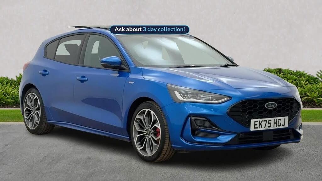 ***FORD DIRECT PREMIUM APPROVED***Optional extras from new include PARKING PACK (REAR VIEW CAMERA, DOOR EDGE GUARDS & AUTO PARK ASSIST), DRIVER ASSISTANCE PACK (INCLUDES ADAPTIVE CRUISE CONTROL, AUTO HIGH BEAM ASSIST & DRIVER ALERT SYSTEM), BLIND SPOT DETECTION SYSTEM (BLIS), HEADS UP DISPLAY & ELECTRIC PANORAMIC OPENING SUNROOF. Other standard features include 18" DIAMOND CUT ALLOYS, FULL ST LINE SPORTS STYLING BODY KIT WITH REAR SPOILER & PRIVACY GLASS, SYNC 4 13.2" LARGE TOUCH SCREEN ENTERTAINMENT WITH SATELLITE NAVIGATION & DAB RADIO, DIGITAL COCKPIT, COMPATIBLE WITH APPLE CAR PLAY & ANDROID AUTO, SPORTS FRONT SEATS WITH FLAT BOTTOM MULTI FUNCTION STEERING WHEEL & STAINLESS STEEL RACE PEDALS, HEATED FRONT SEATS & HEATED STEERING WHEEL, WIRELESS CHARGING PAD, B&O PLAYER, BLUETOOTH WITH VOICE COMMAND, CLIMATE CONTROLLED AIR CONDITIONING, QUICK CLEAR HEATED FRONT WINDSCREEN FOR THOSE FROSTY MORNINGS AND SO MUCH MORE . We're absolutely delighted to offer this stunning latest shape Focus ST Line X as part of our Approved Used stock. This top of the range Focus with only 1026 miles is presented in stunning DESERT ISLAND BLUE metallic colour with contrasting sports cloth trim. We believe this excellent value Focus with most optional extras from new is a pure joy to drive with effective hybrid technology delivering smooth & efficient power (155 BHP) on every surface. This car needs to be viewed and driven to be truly appreciated so why wait, call now to enquire***2 YEARS FREE RAC ROADSIDE ASSISTANCE WITH THIS CAR***Lookers Ford Sheffield (S4 7UQ) ARE A FORD APPROVED RETAILER. WE OFFER COMPETITIVE FINANCE RATES AND ALL OUR VEHICLES ARE THOROUGHLY INSPECTED & HPI CLEAR. AS PART OF THE LOOKERS LIMITED GROUP, WE HAVE ACCESS TO OVER 40 DIFFERENT BRANDS, SO WE ARE BEST PLACED TO FIND THE CORRECT VALUE FOR YOUR PART EXCHANGE. BUY WITH CONFIDENCE FROM A COMPANY ESTABLISHED IN 1908. LOOKERS A GOOD DEAL, BETTER** PLEASE CALL NOW FOR MORE INFORMATION & A PERSONALISED VIDEO SHOWING YOU YOUR NEXT CAR t: 01142766000 Unless otherwise stated, vehicles may have previously been used for business or hire purposes and so may have had multiple users. Where we hold documents relating to vehicle history, these are available for inspection on request.