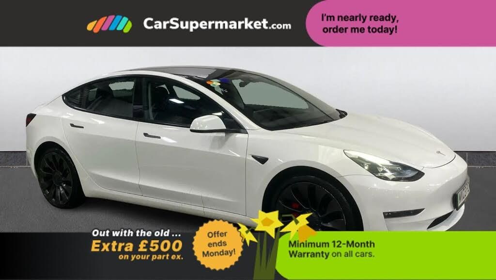 Blind Spot Monitoring, Lane Departure Warning, Sat Nav, Traffic Sign Recognition, Cruise Control, Digital Radio, Bluetooth, Heated Front Seats, Heated Rear Seats, Heated Steering Wheel, Keyless Entry;This white Tesla Model 3 Performance delivers exhilarating fully electric driving with dual motor all wheel drive and Tesla?s performance upgrade package. The vehicle includes advanced safety features such as blind spot monitoring, lane departure warning, traffic sign recognition and cruise control. Satellite navigation, digital radio and Bluetooth connectivity provide everyday convenience while heated front and rear seats and a heated steering wheel ensure comfort in all conditions.