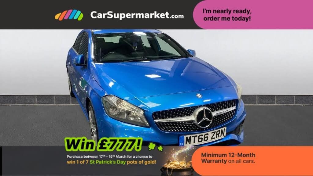 8" colour display screen,Attention assist,Bluetooth interface for hands free telephone,Bulb failure indicator,DYNAMIC SELECT with a choice of driving modes (ECO, Comfort, Sport, Sport+ and Individual),External temperature gauge,Low fluid warning light,Reversing camera,Service indicator (ASSYST PLUS),Speed dependent sports steering system,Trip computer,Lowered suspension,6 speakers,Media interface,Mercedes Audio 20 radio/single CD + telephone keypad,USB port,Adaptive brake lights,AMG body styling,Body colour bumpers,Body colour door handles,Body colour side skirt,Daytime running lights,Diamond radiator grille with chrome pins and silver louvre + chrome insert,Electric adjustable heated door mirrors,Electric front windows,Electric rear windows,Headlamp assist,Heated rear window with timer,Rain sensor windscreen wipers,Rear wiper,Twin Trapezoidal tailpipes,1/3 to 2/3 split folding rear seats,12V socket,3 Spoke sports multifunction flat bottomed leather steering wheel,Ambient lighting,Artico man-made leather/Dinamica upholstery,Auto Mercedes-Benz child seat recognition sensor,Black headlining,Brushed stainless steel sports pedals,Dual zone automatic climate control,Footwell lights,Front and rear reading lights,Front centre armrest with storage compartment,Front head restraints,Front sport seats,Gearshift paddles on steering wheel,Height adjustable front seats,Height/reach adjustable steering column,Illuminated door sills,Illuminated glovebox,Illuminated storage compartment,Isofix rear child seat preparation,Load securing rings in luggage compartment,Luggage compartment cover,Luggage net under rear parcel shelf,Parcel net in front passenger footwell,Rear head restraints,Storage compartment under load area floor,Sunvisors with illuminated vanity mirrors,Twin front cupholders,Seat comfort pack - A Class,Stowage Pack - A Class,3 rear 3 point seatbelts,ABS with Brake Assist,Active bonnet,Adaptive brake system,Brake calipers with Mercedes-Benz lettering + perforated brake discs,Child proof door locks,Crash responsive emergency lighting,Drivers knee airbag,Dual stage driver/passenger airbags,Electronic parking brake,ESP with ASR,Front and rear seatbelt reminder,Front head airbags,Front passenger seat occupancy sensor,Front side airbags,Hill start assist,Tyre pressure monitoring system,Warning triangle and first aid kit,Window airbags,Alarm system/interior protection/immobiliser,Keyless ignition,Remote central locking,Carbon effect trim,Chrome air vent surrounds,Tirefit sealant with electric air pump