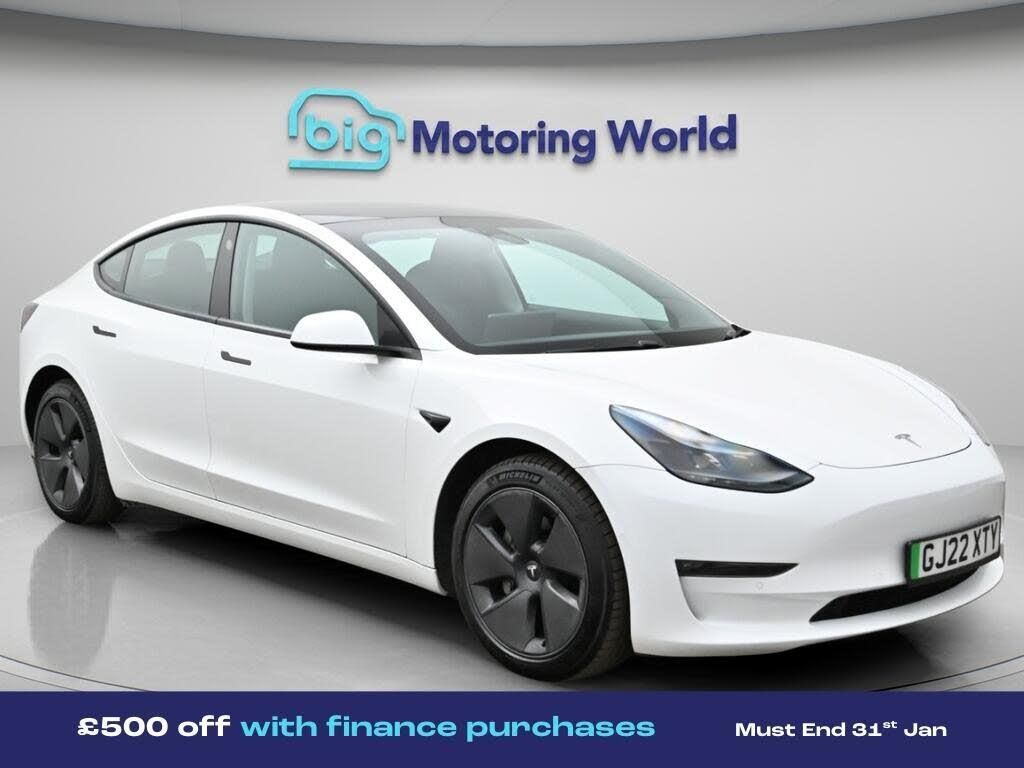 £500 towards your finance depo-Our Tesla Model 3 is finished in White. Specification includes a range of fantastic features including £500 towards your finance deposit, Panoramic Roof, All Wheel Drive, 18'' alloy wheels, Leather Seats, Adaptive Cruise Control, Satellite Navigation, Heated Seats, Wireless Phone Charging, Rear View Camera Specification information is supplied by CAPHPI and may vary to the actual car. This data does not form any part of a buying contact. Please check specification prior to purchase in-store. The MOT is valid until March 2027, visit bigmotoringworld.co.uk for more photos, a 360 tour, service history and a free HPI report.Were BIG on peace of mind and this White Tesla Model 3 has completed our comprehensive 200 point inspection and passed all checks. Its ready for you to drive away with immediate collection in-store. We include a 90-day warranty as standard plus an option to extend for up to 3 years.Reserve this car exclusively for you, safely and securely at bigmotoringworld.co.uk, with a fully refundable £99 deposit. Test drive before you buy, with no commitment, no hassle and a completely haggle free experience. Still searching and want to see thousands more cars? We are BIG on choice with over 8000 cars to choose from.Visit our award winning web site bigmotoringworld.co.uk.Were Big Motoring World and were BIG on what matters to you.