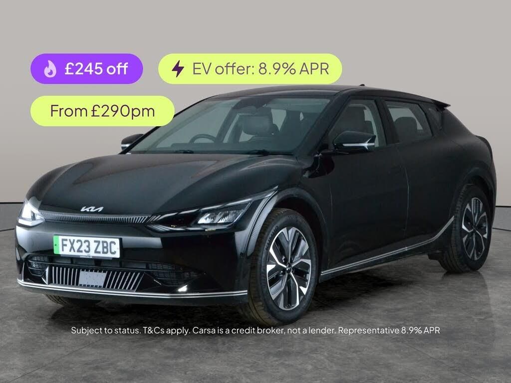 Experience the future with the Kia EV6 Air. This striking black hatchback offers heated leather seats, a heated steering wheel and sleek LED headlights for those colder days. Enjoy effortless journeys with adaptive cruise control, active lane assist, and the reversing camera for added confidence. Stay connected on the move with Apple CarPlay, Bluetooth audio streaming and a digital display. Sat nav guides every adventure while clever B pillar ventilation keeps everyone comfortable. Discover intelligent electric driving with the Kia EV6. 1 service recorded, last serviced on 11/03/2025 at 17,090 miles. MOT to 11/03/2027. Visit our website for service history, online valuation, full vehicle specification plus multiple images. This vehicle is VAT qualifying. Any feature/option specified here is from 3rd party data. We cannot guarantee the accuracy of any specification supplied by a 3rd party. We recommend that you physically check the specification of the vehicle on site prior to purchase. This information does not form part of the buying contract. Terms & Conditions apply. We have over 2,000 cars available from our 10 national branches, check our website to see all our stock. Our Trustpilot rating is 4.4/5 with over 9,000 reviews.