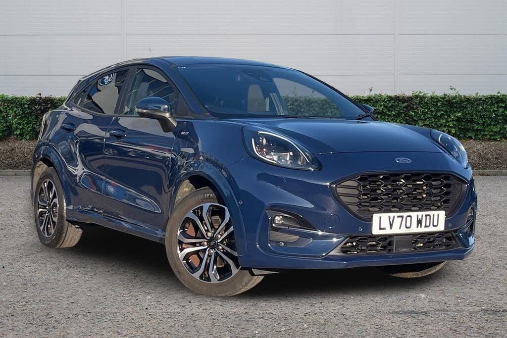 17in Alloy Wheels - 5x2 Spoke - Black Machined Finish, ABS - Anti-lock Braking System, Acoustic Laminated Windscreen, Active Grille Shutter, Automatic Dimming Rear View Mirror, Automatic Headlights with Rain-Sensing Wipers and Auto High Beam, Centre Console with Armrest - Stowage, Courtesy Lights - Ambient LED Courtesy Lighting - Single Colour, Cruise Control - Lane Keeping Aid and Lane Departure Warning, Driver Seat Lumbar and Height Adjustment, Electric Windows - Front and Rear, Electronic Stability Control - ESC with Traction Control and Emergency Brake Assist - EBA, Emergency Brake Warning - Automatic Hazard Warning Lights, First Aid Kit Strap, Floor Mats - Front and Rear, Ford Easy Fuel System, Ford MegaBox Extended Bootspace, Ford Power Starter Button, Ford SYNC 3 Navigation, Front Bumper - Unique ST-Line Sport Design - Body Colour, Front Door Threshold Plates - ST-Line, Front Fog Lights with Cornering lights and LED Rear Lamps, Front Seats - Sports Style, Full Digital 12.3in Instrument Cluster, Gearshift Knob - Soft Feel with Red Stitching, Headliner - Deluxe, Instrument Panel - High Level, Large Rear Spoiler - Body Colour with Centre High Mounted Stop Light, Locking Wheel Nuts, Lower Bodyside Moulding - Body Colour, Manual Air Conditioning, Post Collision Braking, Power Steering, Power-Foldable Heated Door Mirrors with Puddle Lamps, Pre-Collision Assist with Autonomous Emergency Braking and Pedestrian-Cyclist Detection, Projector Headlamps with LED Daytime Running Lights, Puma Badge, Quickclear Heated Windscreen, Rear Bumper Body Colour - Diffuser, Rear Parking Sensors, Rear Seats - 2-Way Head Restraint Up-Down, Rear Seats - Second Row 60-40 Folding Seats, Remote Central-Double Locking, Restrain Device Pack, ST-Line Badge, ST-Line Body Styling Kit, ST-Lined Flat-Bottomed Leather Steering Wheel - Leather Handbrake and Aluminium Gear Knob, Selectable Driving Modes - Normal - Eco - Sport - Slippery and Trail, Speed Limiter, Sports Suspension, Stainless Steel Pedal Covers with Rubber Inserts, Thatcham Alarm, Trip-Fuel Computer, Tyre Inflation Kit, Tyre Pressure Monitoring System - TPMS, Wireless Charging