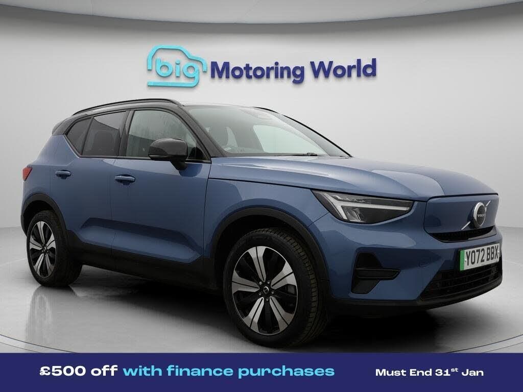 £500 towards your finance depo-Our Volvo XC40 is finished in Blue. Specification includes a range of fantastic features including £500 towards your finance deposit, Apple CarPlay, Satellite Navigation, Privacy Glass, Bluetooth, Parking Sensors, 2 Zone Climate, Cruise Control, Sports Seats, Climate Control Specification information is supplied by CAPHPI and may vary to the actual car. This data does not form any part of a buying contact. Please check specification prior to purchase in-store. The MOT is valid until February 2027, visit bigmotoringworld.co.uk for more photos, a 360 tour, service history and a free HPI report.Were BIG on peace of mind and this Blue Volvo XC40 has completed our comprehensive 200 point inspection and passed all checks. Its ready for you to drive away with immediate collection in-store. We include a 90-day warranty as standard plus an option to extend for up to 3 years.Reserve this car exclusively for you, safely and securely at bigmotoringworld.co.uk, with a fully refundable £99 deposit. Test drive before you buy, with no commitment, no hassle and a completely haggle free experience. Still searching and want to see thousands more cars? We are BIG on choice with over 8000 cars to choose from.Visit our award winning web site bigmotoringworld.co.uk.Were Big Motoring World and were BIG on what matters to you.