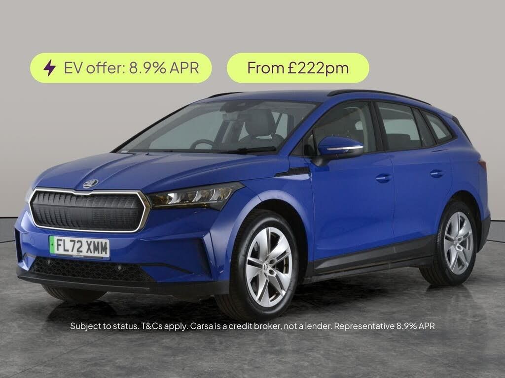 Experience the future of driving with this blue Skoda Enyaq iV. Enjoy seamless connectivity with Apple CarPlay, WiFi, and SmartLink, while the integrated Sat Nav and Traffic Sign Recognition make every journey a breeze. Stay comfortable with dual zone digital climate control and cruise control. LED headlights and stylish 19in alloy wheels add a touch of sophistication, and practical black roof rails offer extra versatility. This electric SUV brings tech, comfort, and style together for your daily drive. 1 service recorded, last serviced on 14/10/2024 at 19,227 miles. MOT to 02/11/2026. Visit our website for service history, online valuation, full vehicle specification plus multiple images. This vehicle is VAT qualifying. Any feature/option specified here is from 3rd party data. We cannot guarantee the accuracy of any specification supplied by a 3rd party. We recommend that you physically check the specification of the vehicle on site prior to purchase. This information does not form part of the buying contract. Terms & Conditions apply. We have over 2,000 cars available from our 10 national branches, check our website to see all our stock. Our Trustpilot rating is 4.4/5 with over 9,000 reviews.