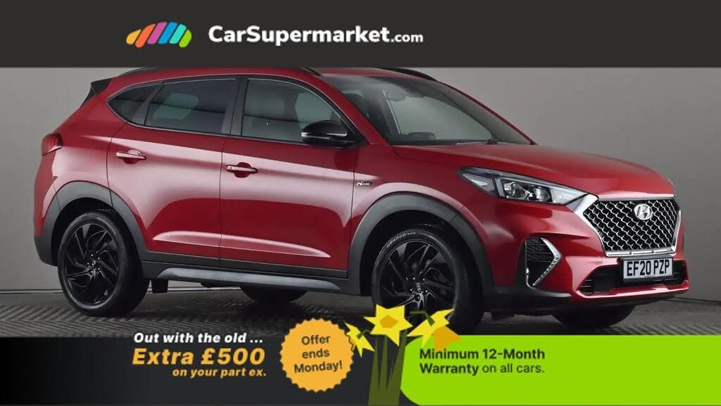 Sat Nav, Android Auto, Apple CarPlay, Bluetooth, Cruise Control, Parking Sensors, Rear View Camera, Digital Radio, Privacy Glass, Heated Front Seats, Keyless Entry;Hyundai Tucson 1.6 CRDi 48V N Line DCT (Red) A sporty SUV with efficient mild-hybrid diesel performance and bold N Line styling. Features sat nav, Apple CarPlay/Android Auto, cruise control, parking sensors, rear view camera, digital radio, privacy glass and heated front seats. Last serviced 12/03/2026. MOT due 10/03/2027. Minimum 12-month warranty.