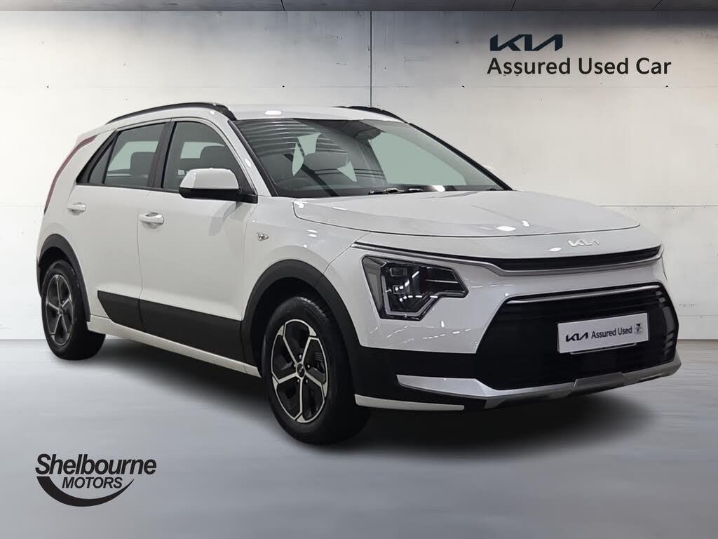 4.2" supervision colour cluster display, 8" touch screen, Adaptive smart cruise control function (SCC) with stop and go, Apple car play/Android Auto with voice control, Drive mode select (Eco, sport), E-call, Emergency stop signalling system, Forward Collision-Avoidance Assist (FCA) 1.5 - City/Pedestrian/Cyclist/Junction turning, Lane Following Assist (LFA), Lane keep assist, Motor driven power steering, Rear parking sensors, Reversing camera with dynamic guide lines, Speed limit assist, Tailgate, Trip computer with distance/fuel consumption/average speed, Sports H-Matic Automatic, 'Shark fin' mobile antenna, 2 type C USB ports on front seats, 2 USB ports in centre console including 1 type C, 6 speakers, Bluetooth with music streaming, DAB Digital radio, Steering wheel mounted controls, Acoustic windshield, All round electric windows with drivers auto up/down function, Auto dimming rear view mirror, Automatic defog system, Automatic headlight control system, Black embossed cladding, Body colour bumpers, Body colour door mirrors, Body colour exterior door handles, Dual LED headlights (low and high projection), Electric heated door mirrors, Front and rear silver skid plates, Heated rear window with timer, LED daytime running lights, LED rear combination lights, LED third brake light, Manual folding door mirrors, Rain sensor, Rear fog lights, Rear side wing doors, Rear spoiler, Rear wiper, Roof rails, Solar glass rear windows and tailgate, Solar glass windscreen, Welcome and follow-me home light functionality, Windscreen Washer Level Warning, 12V socket in front, 12V socket in luggage compartment, 3 seat bench in 2nd row, 60/40 split/folding 2nd row of seats, All-round height adjustable headrests, Artificial leather centre console storage box, Artificial leather steering wheel, Bulb overhead console, 2nd row and luggage lamp, Centre console cupholder, Cloth upholstery, Driver seat manual adjustment, Driver/passenger sunvisors with illuminated vanity mirrors, Dual zone automatic air conditioning, Front and rear door storage, H-Matic gear selection, Illuminated glovebox, Interior door lock/unlock function, ISOFIX Child seat top tethers and anchor fixings, Luggage area load cover, Luggage board, Metal paint interior door handles, Passenger seat height adjuster, Rear armrest, Single front passenger seat, Tilt/telescopic adjustable steering wheel, Towing pack - Niro, 3 point seatbelts on all seats, ABS, Automatic unlocking of doors in case of impact, Centre side front airbags, Curtain and side airbags, Drivers knee airbag, Dual shell horn, Electric parking brake with auto hold function, Electronic stability control, Front passenger airbag deactivation, Height adjustable front seatbelts, Hill start assist control (HAC), Manual rear child locks, Rear seat alert system, Traction control, Tyre pressure monitoring system, Alarm system and engine immobiliser, Deadlocks, Locking wheel nuts, Remote central door locking with fold away key, Visible vehicle identification number, Warranty - 7 Years/ 100,000 miles, Graphite paint centre fascia, 16" alloy wheels, Tyre mobility kit