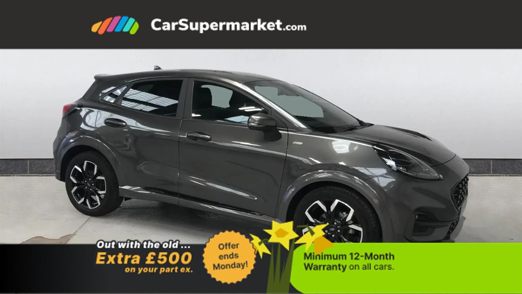 Lane Departure Warning, Traffic Sign Recognition, Privacy Glass, Quickclear Heated Windscreen, Wireless Phone Charging, Sat Nav;Finished in Magnetic grey, this Ford Puma ST-Line X offers sporty styling with efficient mild hybrid performance and excellent technology. Highlights include lane departure warning, traffic sign recognition, privacy glass, Ford?s Quickclear heated windscreen, wireless phone charging and satellite navigation. The vehicle also benefits from optional Magnetic paint and partial premium Sensico upholstery in black with red stitching, with options totalling £675. It also comes with a minimum 12-month warranty.