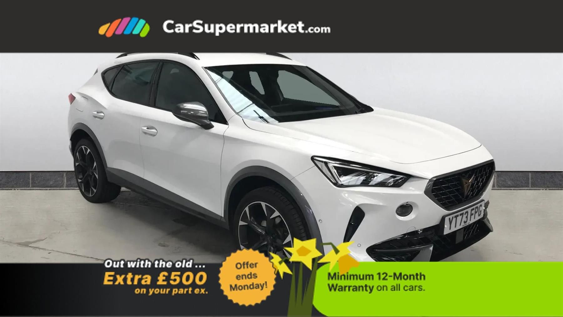 Digital Cockpit, Sat Nav, Parking Sensors, Adaptive Cruise Control, Cruise Control, Android Auto, Apple CarPlay, Heated Steering Wheel, Keyless Entry;Cupra Formentor 1.5 TSI 150 V2 DSG (White) Sporty SUV with digital cockpit and advanced tech. Features include sat nav, parking sensors, adaptive cruise control, cruise control, Android Auto, Apple CarPlay, heated steering wheel, and keyless entry. Minimum 12-month warranty. MOT due 19/09/2026.