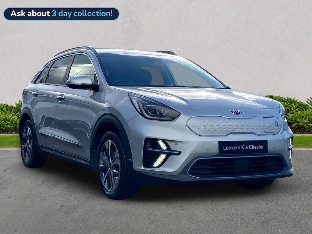 Here at Lookers Kia Chester, We have this lovely Kia E-Niro '4'. This is a full electric vehicle, with a 64kWh battery which is a great size and capable of covering more than 280miles on a single charge. This vehicle comes with a type 2 charging cable which will fit most home chargers, also has a CCS charging port which is used is most electric cars to make on the go charging less difficult. The vehicle has apple car play, android auto, rear privacy glass, reversing camera system, electric folding heated door mirrors, smart cruise control with stop and go functionally making day to day driving pleasurable and providing an extra safety feature to keep you safe on the road. Regenerative braking controlled by paddle shift. Forward collision avoidance assist including pedestrian / cyclist safety. If you have any queries related to charging costs, or home charging points being installed please contact us directly on 01244394325 or pop into the branch. This vehicle has the remainder of it's 7yr Kia Warranty remaining.