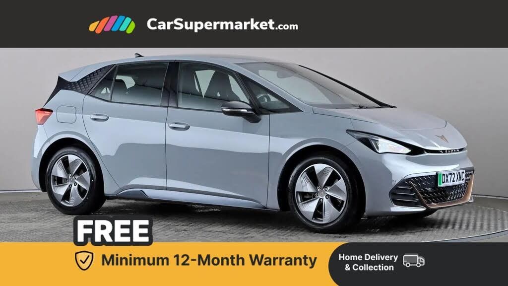 5.3" digital cockpit with 12" central display infotainment system,Bluetooth without wireless charger,Driving profile selection - Range, Comfort, Performance, Individual,Dynamic steering,e-call service,Emergency steering support with turn assist,Forward collision warning with automatic braking,Front/rear park distance control,Lane assist,PAS,Tailgate,Voice assistant,Wireless full link smartphone integration,120kW DC charging capacity,Shock absorption in front,Sports rear shock absorption,2x USB sockets in front,2x USB sockets in rear, charge only,DAB (Digital Audio Broadcasting) and AM/FM radio,Acoustic windshield,Auto dimming rear view mirror,Daytime running lights,Electric adjustable/heated/folding door mirrors,Full LED headlights,Grey exterior mirrors,Heat insulated glass,LED 3rd brake light,LED rear lights,Rear side wing doors,Rear wiper,Transport protection film,Variable intermittent wiper,Welcome home function and adverse weather function,Windshield wiper with light/rain sensor,3 seat bench in 2nd row,Aluminium pedals,CUPRA emblem on steering wheel,Dual zone climate control,Electric auxiliary air heater,Heated leather wrapped multi function steering wheel,Integrated front head restraints,ISOFIX points in outer rear seats with top tether anchorage points,Manual height adjustable front seats,Multi-colour ambient interior lighting,Rear headrests,SEAQUAL Yarn cloth upholstery,Single front passenger seat,Sunvisors with illuminated mirror,Unsplit rear seat bench, split folding backrest, without centre armrest,Pilot M pack - Born,3 point seatbelts on all rear seats,Driver and front passenger airbags with front passenger airbag deactivation, side airbag in front with curtain airbag and front interaction airbag,Extended safety system with proactive passenger protection system,Manual child lock in rear doors,Tiredness recognition system, driver alert system,Tyre pressure monitoring system,Visual and acoustic seat belt reminder,Anti theft alarm system with interior monitoring in cab, backup horn and towing protection,Anti theft wheel bolts,Keyless go central locking system,18" Cyclone alloy wheels,Tool kit,Tyre repair kit