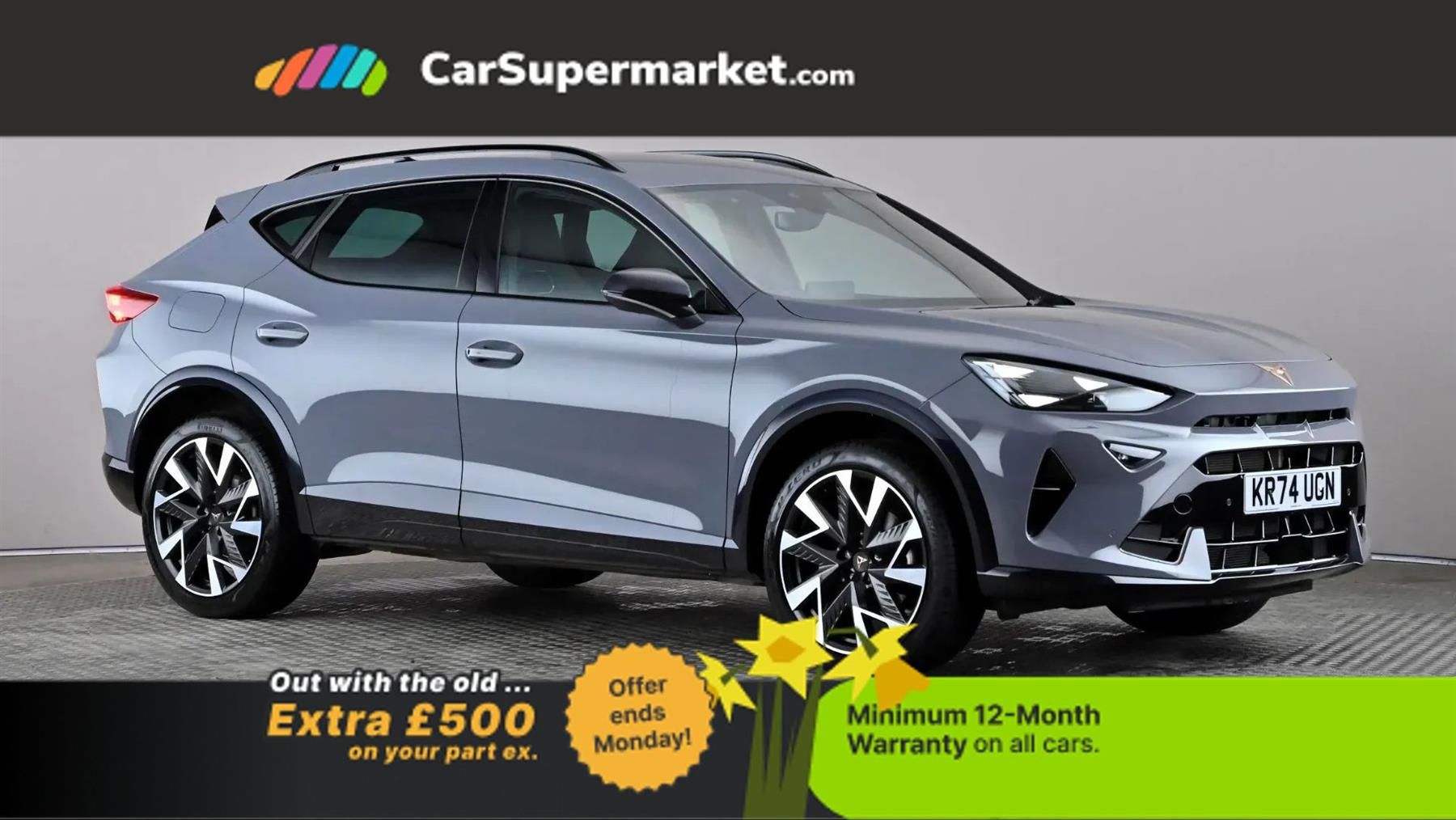 Digital Cockpit, Adaptive Cruise Control, Cruise Control, Parking Sensors, Android Auto, Apple CarPlay, Sat Nav, Heated Front Seats, Keyless Entry;Finished in grey, this Cupra Formentor V2 DSG combines sporty SUV styling with a refined automatic drive and strong technology. Highlights include digital cockpit, adaptive cruise control, cruise control, parking sensors, Android Auto, Apple CarPlay, satellite navigation, heated front seats and keyless entry. It also comes with a minimum 12-month warranty.