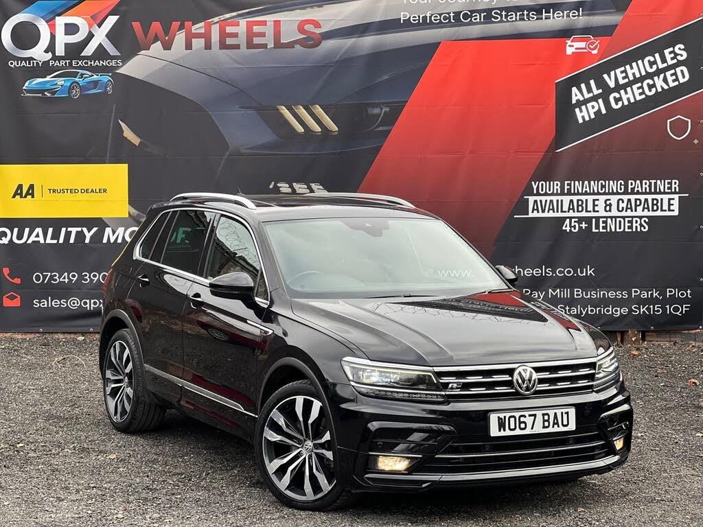 A sharp example of the Volkswagen Tiguan 2.0 TSI R-Line DSG 4Motion, offering sporty R-Line styling, strong petrol performance and smooth automatic driving. Finished in black, this Euro 6 / ULEZ-compliant SUV combines premium comfort, family practicality and confident 4Motion capability.1.OwnersHPI ClearMOT 28/12/2026 & Full service History2 Remote KeysDSG automatic gearbox4Motion four-wheel driveR-Line stylingPanoramic glass roofActive Info Display digital cockpitDiscover NavigationAdaptive Cruise ControlFront Assist / City Emergency BrakingLane AssistFront and rear parking sensorsHeated front sports seats3-zone climate control20in Suzuka alloy wheelsLED headlights with LED daytime running lightsBlack roof-lining and R-Line interior trimDue to high demand, early booking of viewings is recommended. Arrange yours via our website https://qpxwheels.co.uk/ or by calling +44 (0)7349390791Our friendly team will look after you before, during and after the sales. We will help you with taxing the vehicle, completing official forms, and we will make sure that you, your family and loved ones are safe on the road. We also offer a wide range of warranties and finance to meet your needs. WHO WE AREWe are a car dealership with 16 years of experience, based in Clarence Street, Stalybridge, SK15 1QF. We are 100% sure that we can find you the right vehicle as we offer over 150 cars for sale at any time. OUR QUALITY PROMISE- Every car comes with our FREE 3 Months warranty- We offer a fresh MOT for all vehicles due for one within the next 3 months. - All our vehicles are HPI Clear and undergo a 39-Point check, conducted by professional inspectors. - Every vehicle is valeted and sanitised to a high standard. - We are able to offer delivery nationwide at competitive prices, don't hesitate to contact us for a quote.FINANCE, PART EXCHANGE OR A STRAIGHT PURCHASE IS AVAILABLE. QPX Wheels Team.https://qpxwheels.co.uk/-1.OWNER-FSH-PANO ROOF-2 KEYS