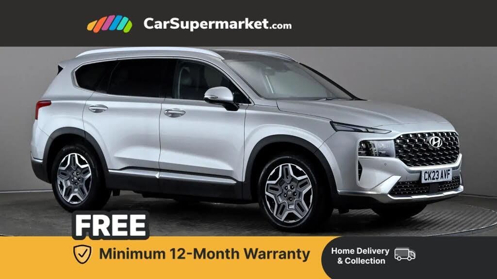 Sat Nav, Android Auto, Apple CarPlay, Blind Spot Monitoring, Bluetooth, Cruise Control, Lane Departure Warning, Wireless Phone Charging, Digital Radio, Privacy Glass, Heated Front Seats, Heated Steering Wheel, Keyless Entry;This Hyundai Santa Fe Hybrid Ultimate is a spacious and premium SUV finished in Typhoon Silver. It comes equipped with satellite navigation, Apple CarPlay, Android Auto, Bluetooth, cruise control and blind spot monitoring. Additional features include wireless phone charging, privacy glass, heated front seats, heated steering wheel and keyless entry. Optional metallic paint is included at a cost of £700. Supplied with a comprehensive warranty.