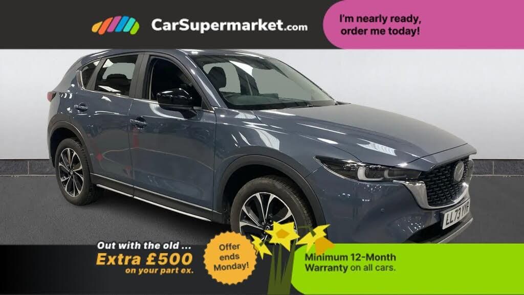 Blind Spot Monitoring, Bluetooth, Parking Sensors, Sat Nav, Lane Departure Warning, Cruise Control, Android Auto, Apple CarPlay, Digital Radio, Privacy Glass, Heated Front Seats;The Mazda CX-5 Newground in grey includes blind spot monitoring, Bluetooth, parking sensors, sat nav, lane departure warning, cruise control, Android Auto, Apple CarPlay, digital radio, privacy glass, and heated front seats.